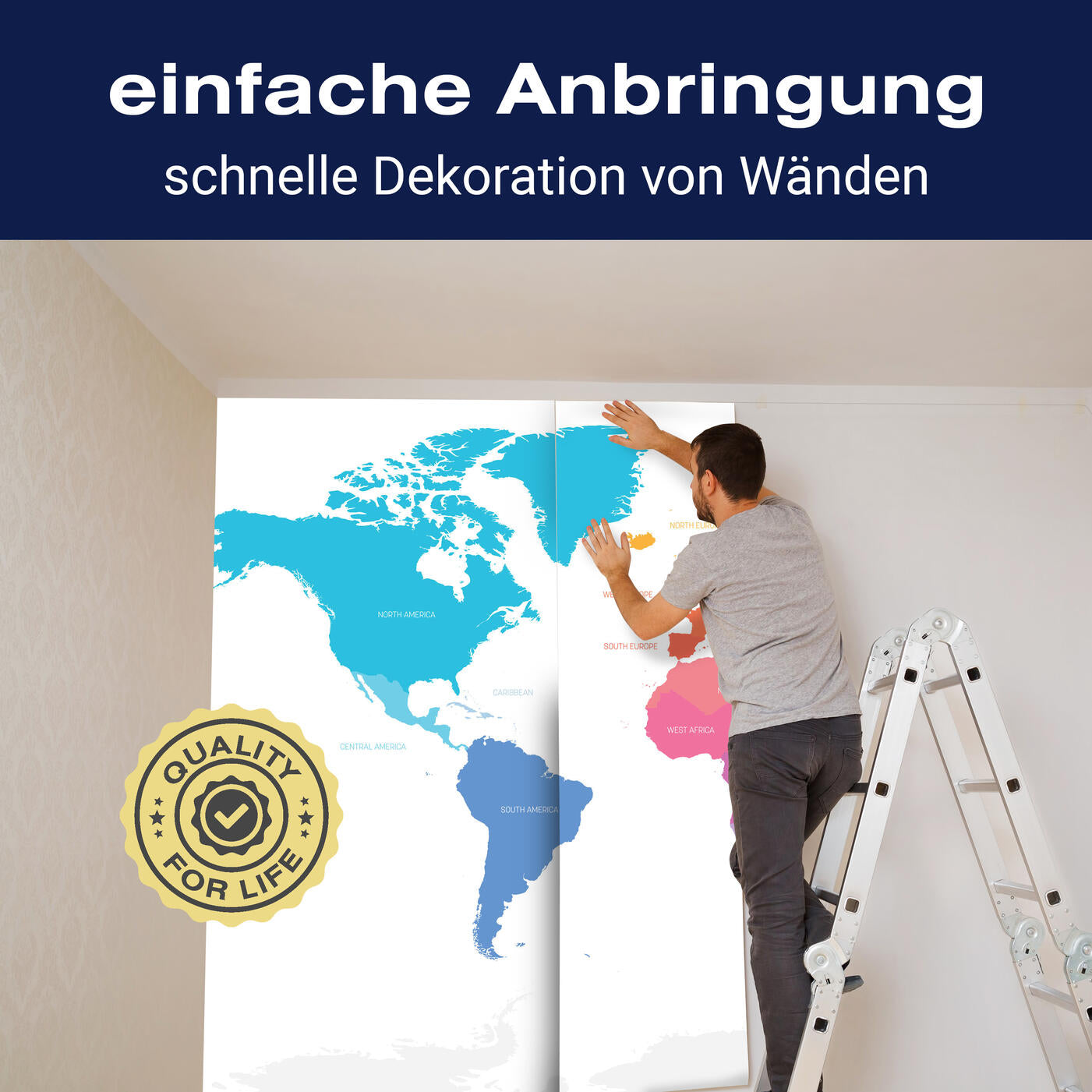 Träumst Du davon, Deine Wände in eine beeindruckende Kunstgalerie zu verwandeln? Mit unserer hochwertigen Fototapete bunte Weltkarte Atlas M6650 ist es jetzt möglich! Jede Wand wird zu einer Leinwand Deiner Kreativität.