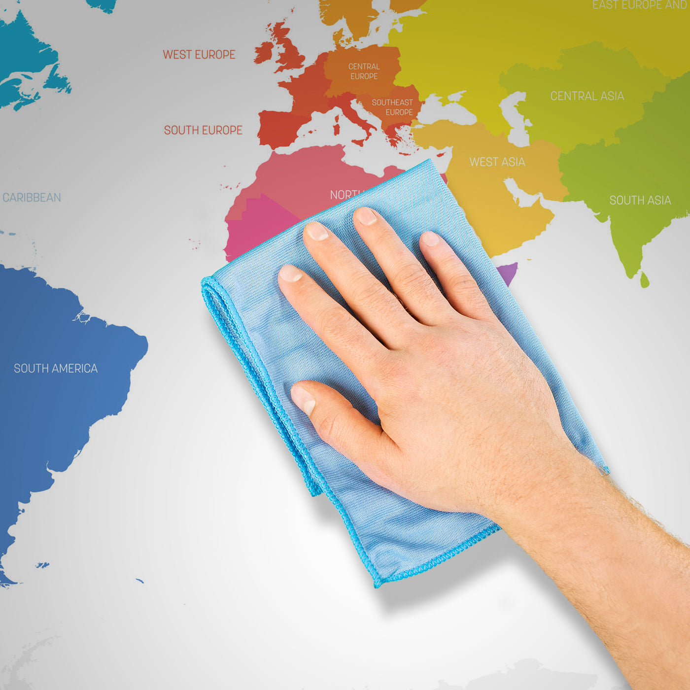- Reinige eventuelle Verschmutzungen oder Kleberreste sofort mit einem feuchten Schwamm oder Tuch.