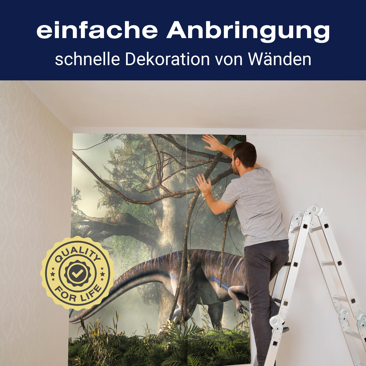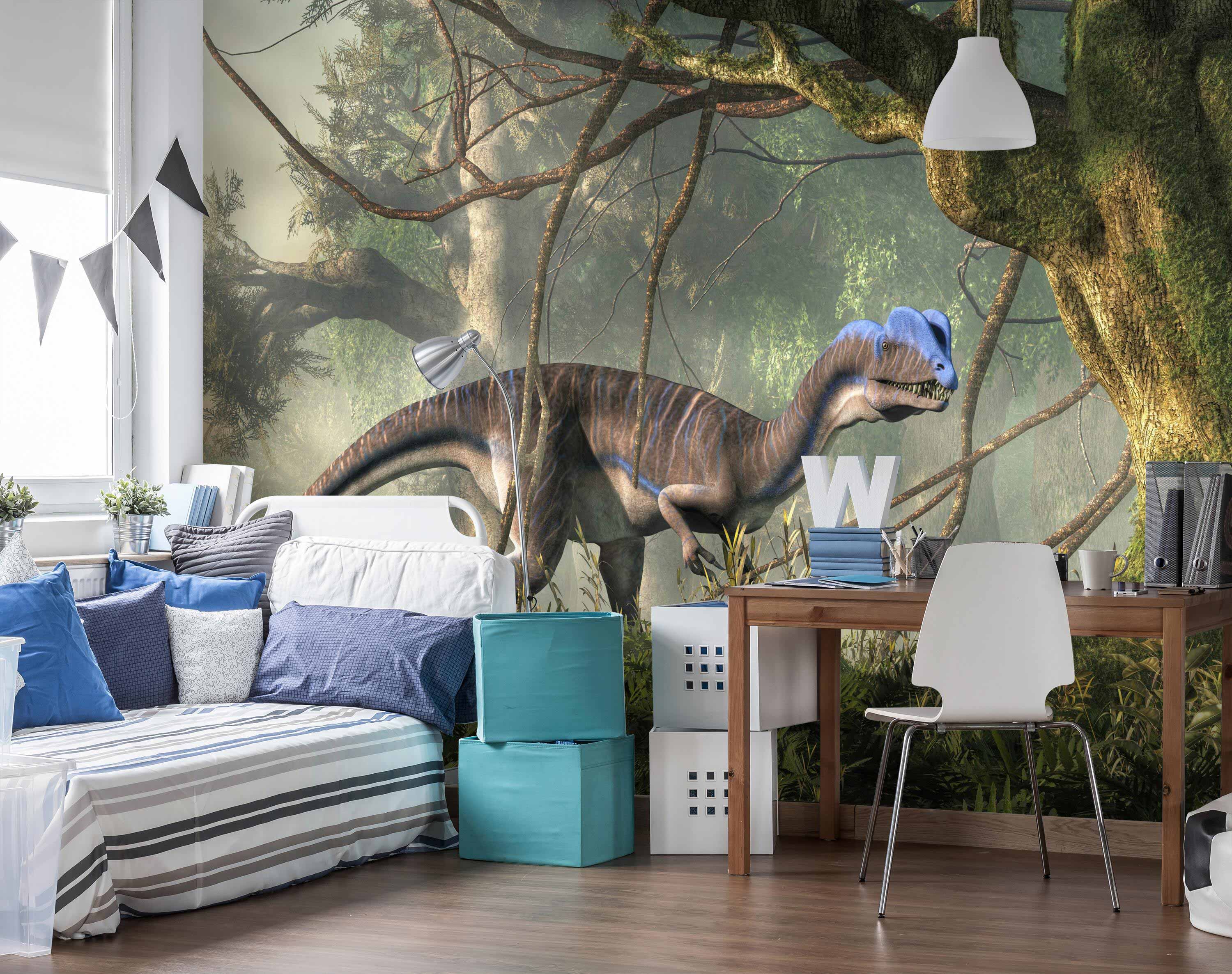Träumst Du davon, Deine Wände in eine beeindruckende Kunstgalerie zu verwandeln? Mit unserer hochwertigen Fototapete Dilophosaurus Dino zwischen Bäumen M6024 ist es jetzt möglich! Jede Wand wird zu einer Leinwand Deiner Kreativität.