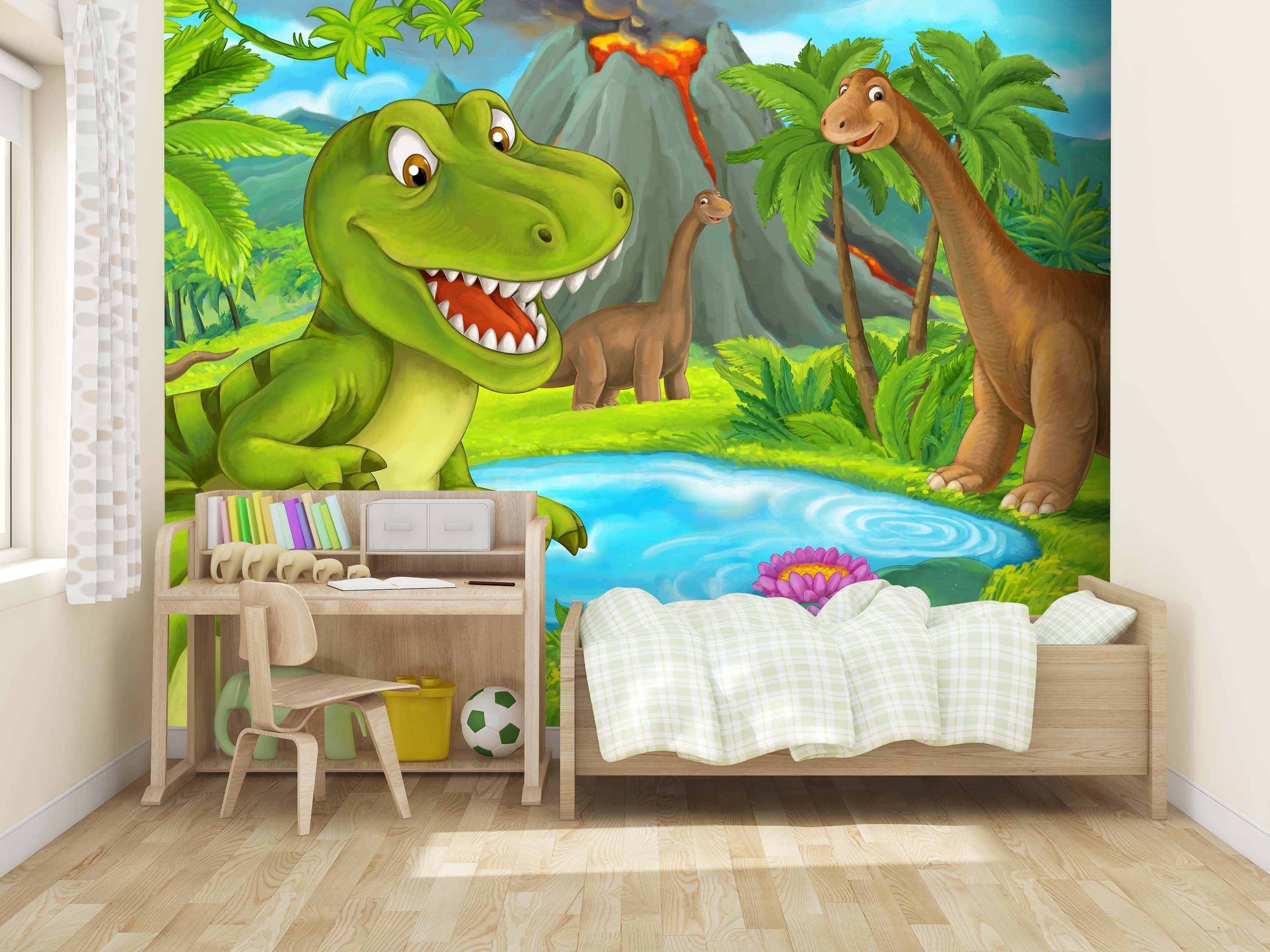 FOTOTAPETE Dino Dinosaurier Berg Teich
