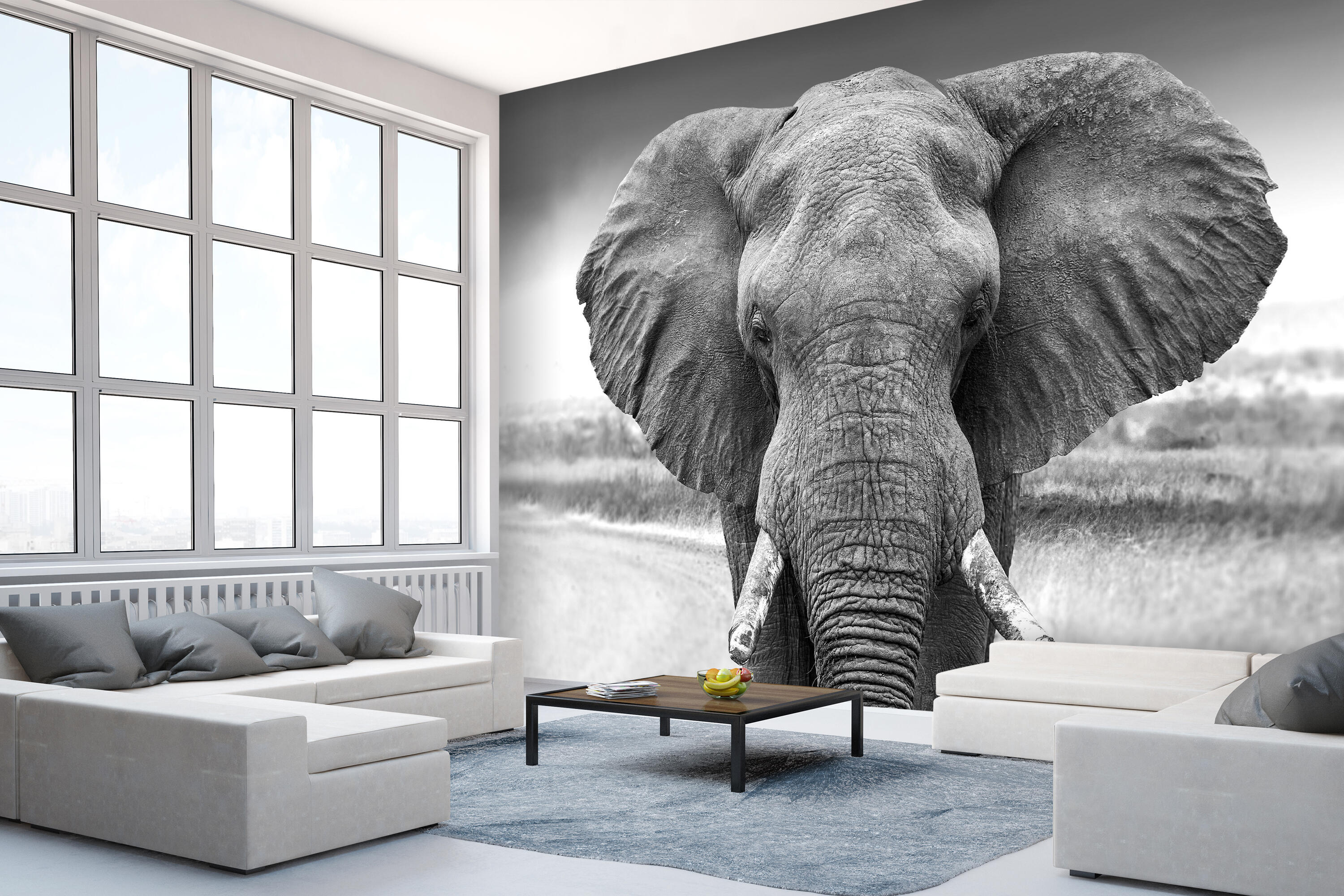 FOTOTAPETE Elefant schwarz weiß