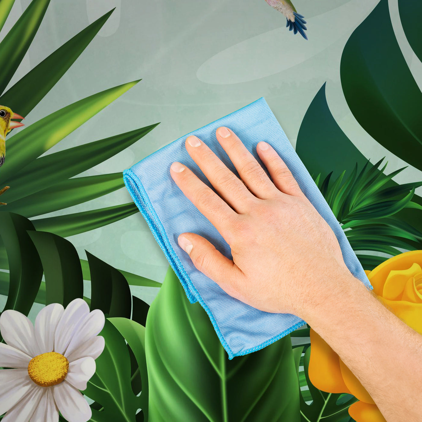 Die Fototapeten sind pflegeleicht und können mit einem feuchten Tuch gereinigt werden, ohne die Farbbrillanz zu beeinträchtigen.