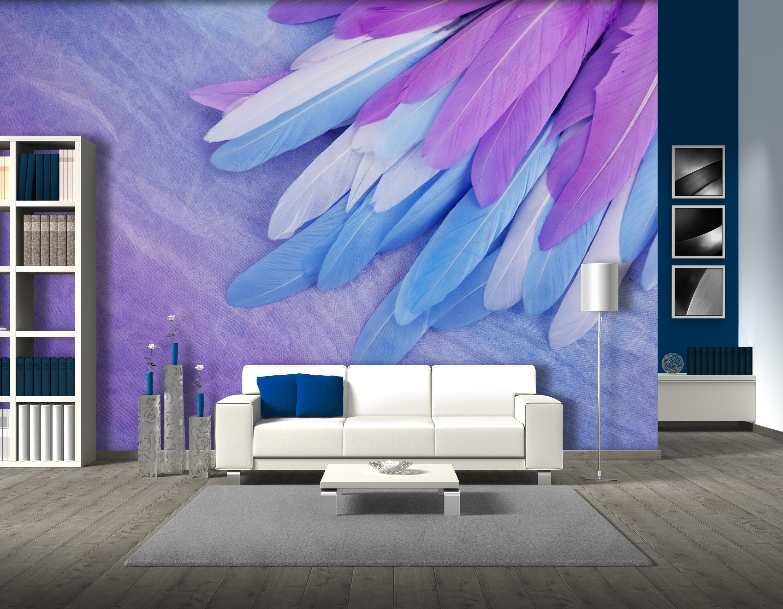 FOTOTAPETE Federn blau rosa