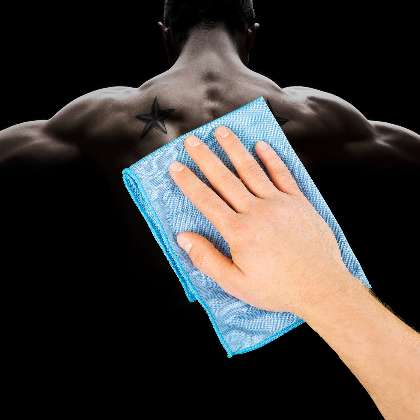 - Reinige eventuelle Verschmutzungen oder Kleberreste sofort mit einem feuchten Schwamm oder Tuch.