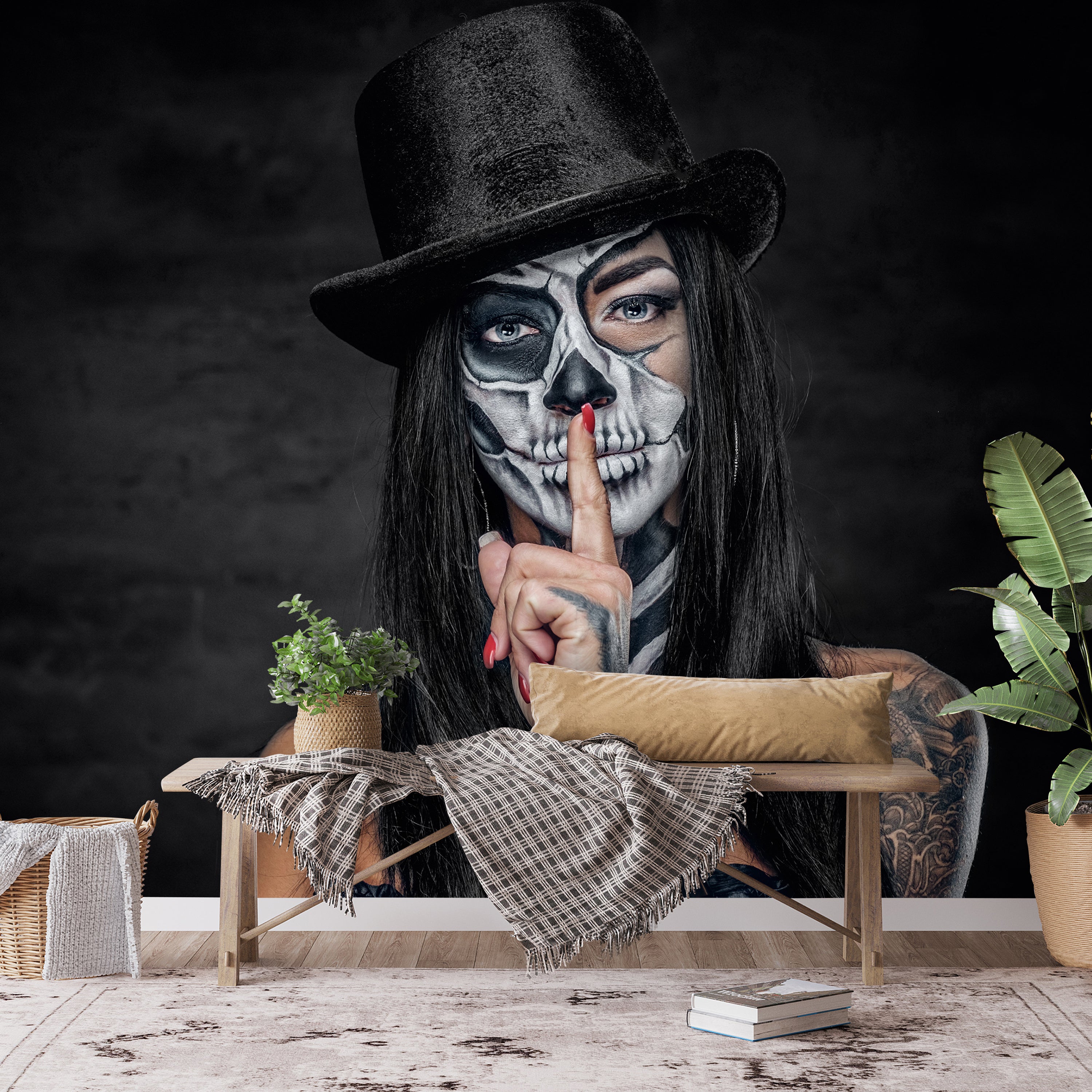 Träumst Du davon, Deine Wände in eine beeindruckende Kunstgalerie zu verwandeln? Mit unserer hochwertigen Fototapete Frau Gesicht Totenkopf M6509 ist es jetzt möglich! Jede Wand wird zu einer Leinwand Deiner Kreativität.