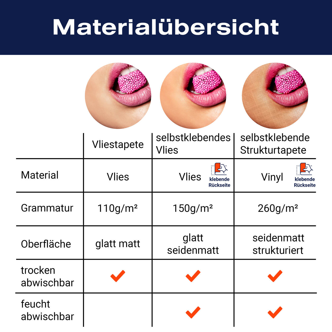 - Selbstklebendes Vlies 150g/m²: Einfach anzubringen, perfekt für Mietwohnungen.