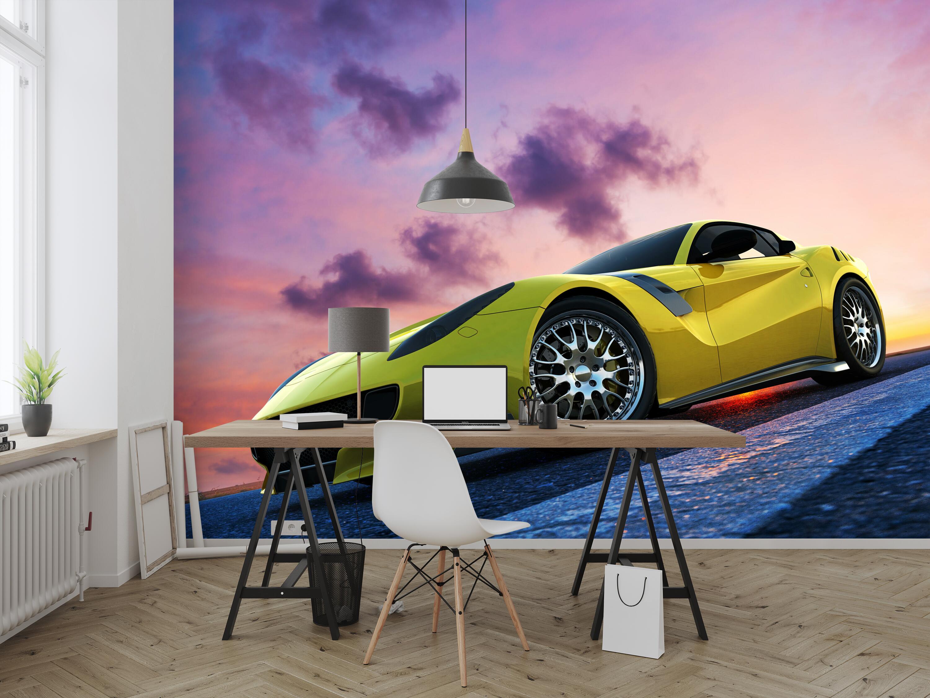 Träumst Du davon, Deine Wände in eine beeindruckende Kunstgalerie zu verwandeln? Mit unserer hochwertigen Fototapete gelber Sportwagen Straße M6729 ist es jetzt möglich! Jede Wand wird zu einer Leinwand Deiner Kreativität.