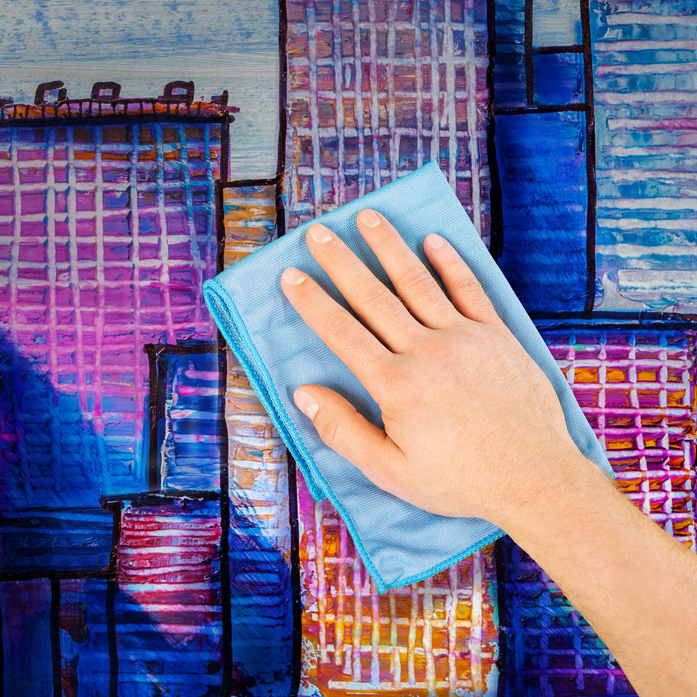 - Reinige eventuelle Verschmutzungen oder Kleberreste sofort mit einem feuchten Schwamm oder Tuch.