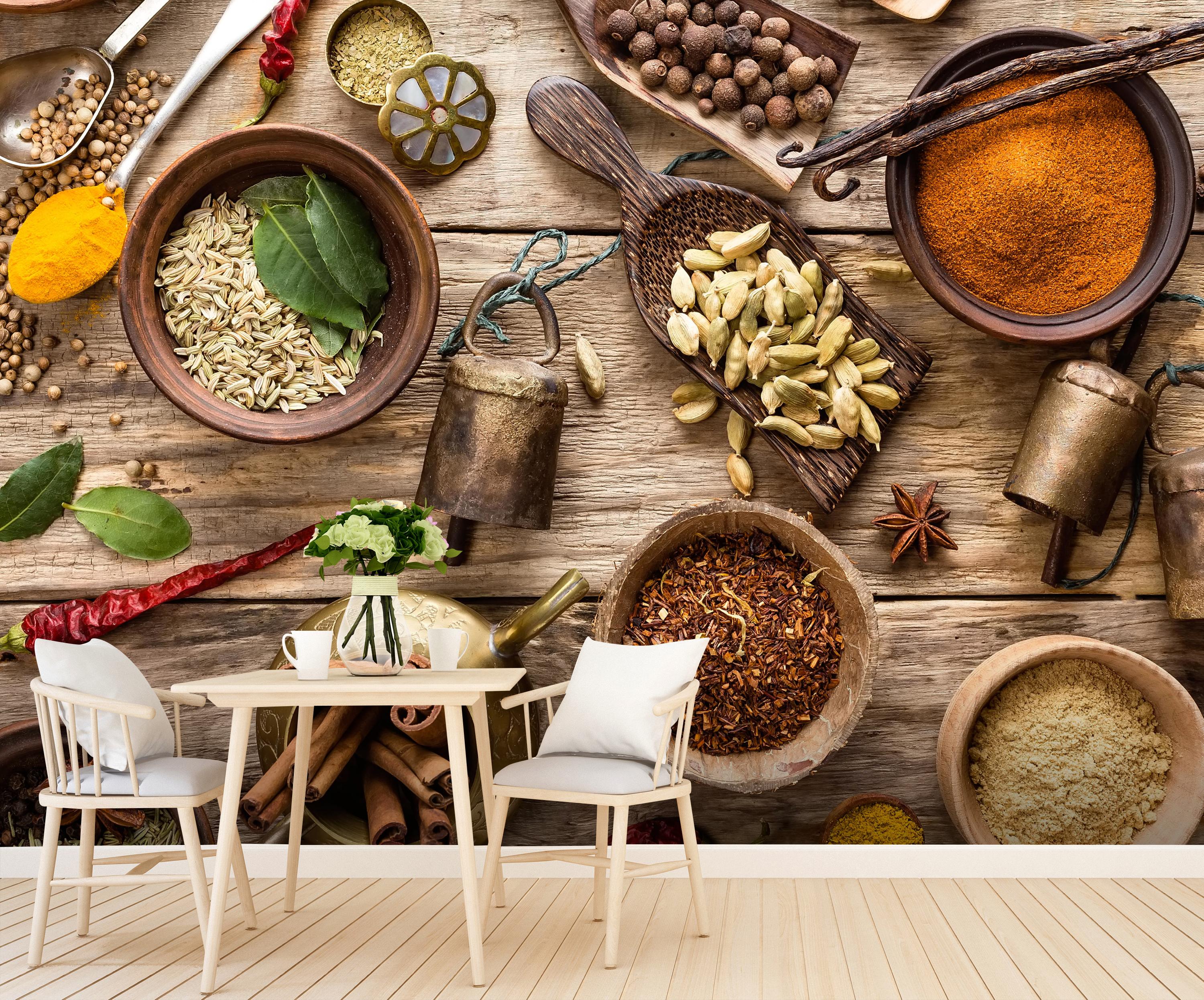 Träumst Du davon, Deine Wände in eine beeindruckende Kunstgalerie zu verwandeln? Mit unserer hochwertigen Fototapete Gewürze Küche Holz M1019 ist es jetzt möglich! Jede Wand wird zu einer Leinwand Deiner Kreativität.