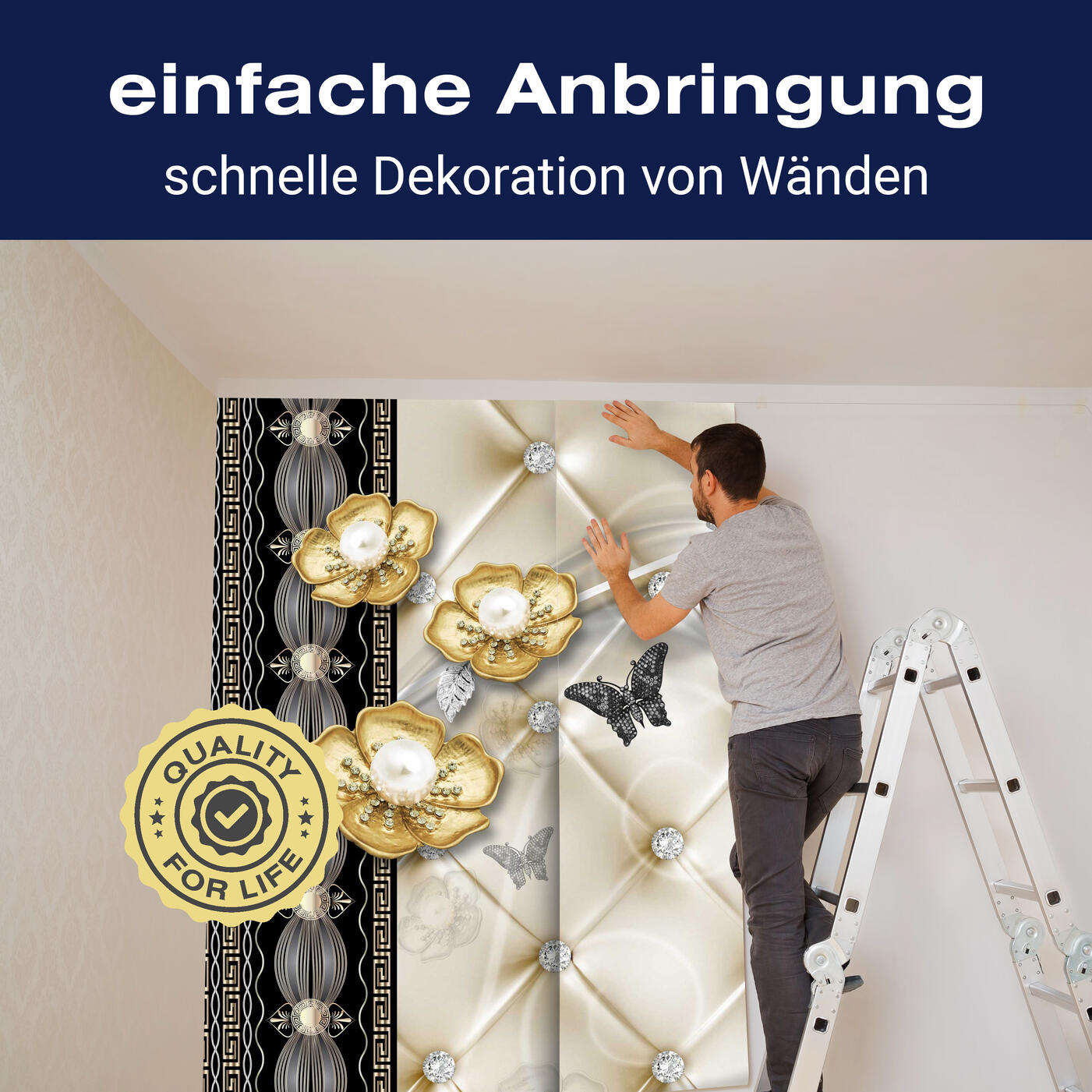 Unsere Fototapeten sind so konzipiert, dass sie ohne großen Aufwand angebracht werden können. Ob selbstklebend oder traditionell, die Anbringung ist einfach und schnell.