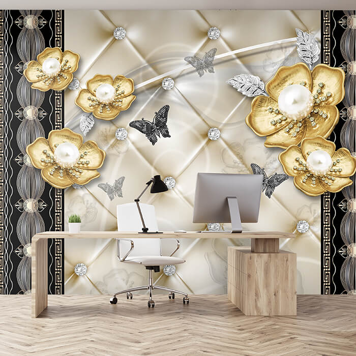 Träumst Du davon, Deine Wände in eine beeindruckende Kunstgalerie zu verwandeln? Mit unserer hochwertigen Fototapete Goldenen Blumen Silber Schmetterlinge M6129 ist es jetzt möglich! Jede Wand wird zu einer Leinwand Deiner Kreativität.