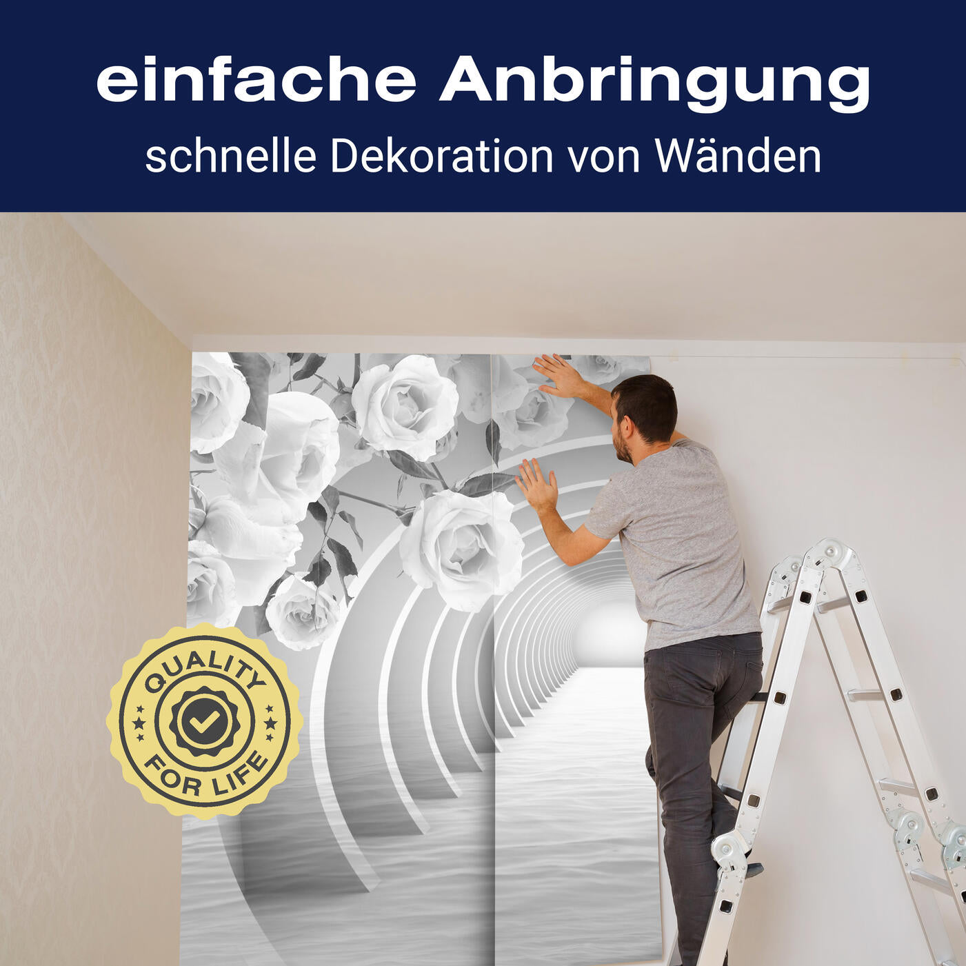 Träumst Du davon, Deine Wände in eine beeindruckende Kunstgalerie zu verwandeln? Mit unserer hochwertigen Fototapete Grau Tunnel Rosen M3960 ist es jetzt möglich! Jede Wand wird zu einer Leinwand Deiner Kreativität.