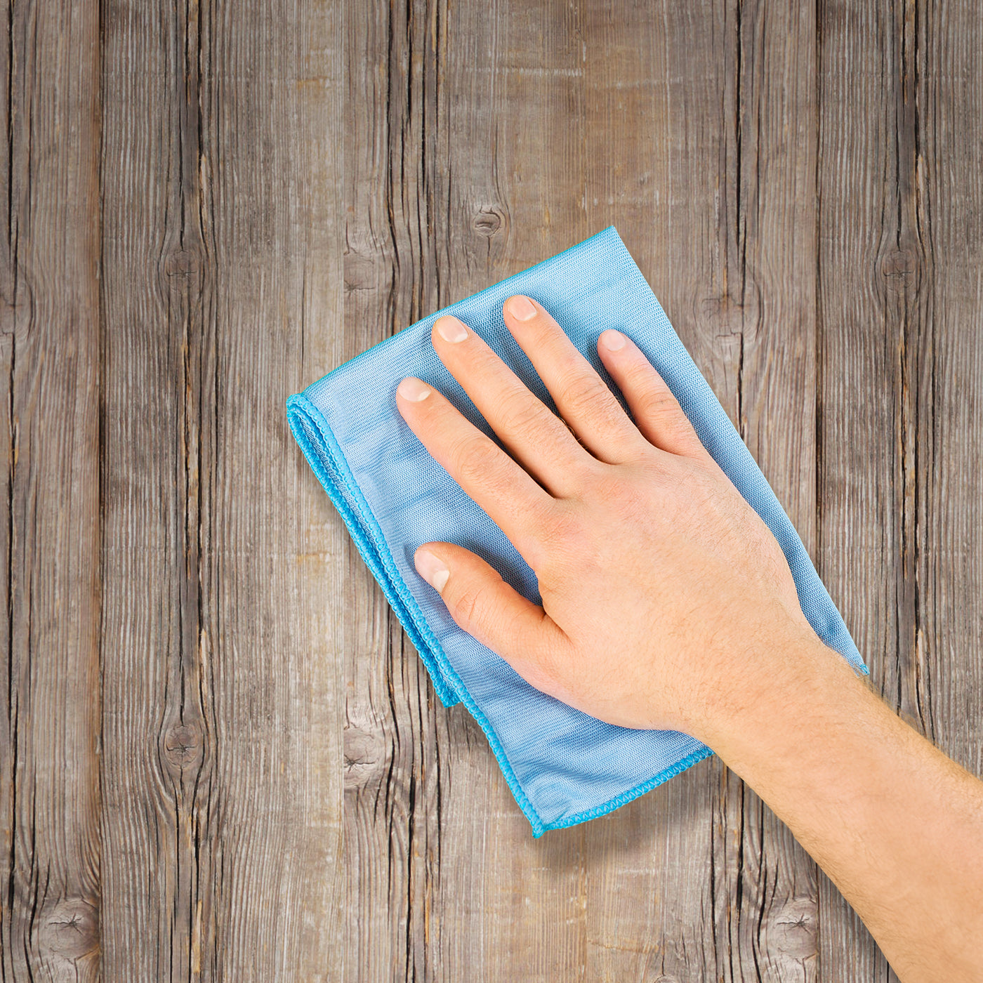 - Reinige eventuelle Verschmutzungen oder Kleberreste sofort mit einem feuchten Schwamm oder Tuch.