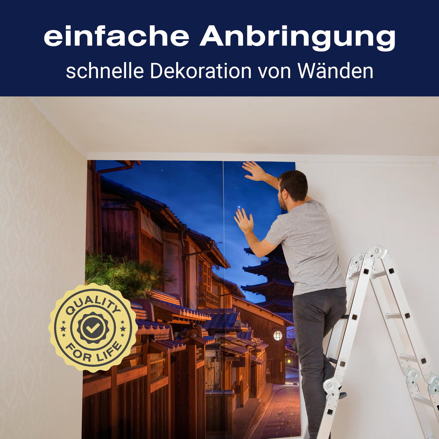 Unsere Fototapeten sind so konzipiert, dass sie ohne großen Aufwand angebracht werden können. Ob selbstklebend oder traditionell, die Anbringung ist einfach und schnell.