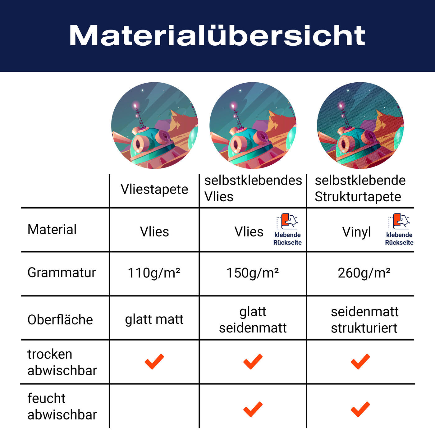 - Selbstklebendes Vlies 150g/m²: Einfach anzubringen, perfekt für Mietwohnungen.