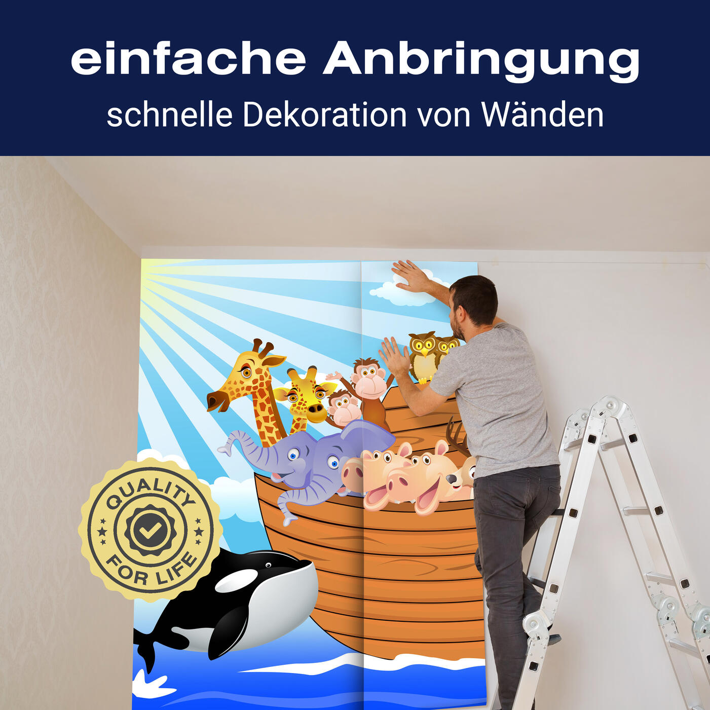 Träumst Du davon, Deine Wände in eine beeindruckende Kunstgalerie zu verwandeln? Mit unserer hochwertigen Fototapete Kinderzimmer Arche Noah M0503 ist es jetzt möglich! Jede Wand wird zu einer Leinwand Deiner Kreativität.