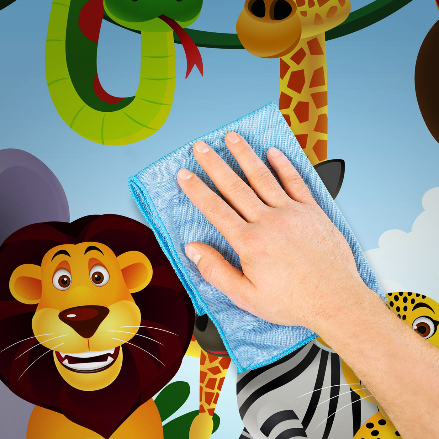 Die Fototapeten sind pflegeleicht und können mit einem feuchten Tuch gereinigt werden, ohne die Farbbrillanz zu beeinträchtigen.