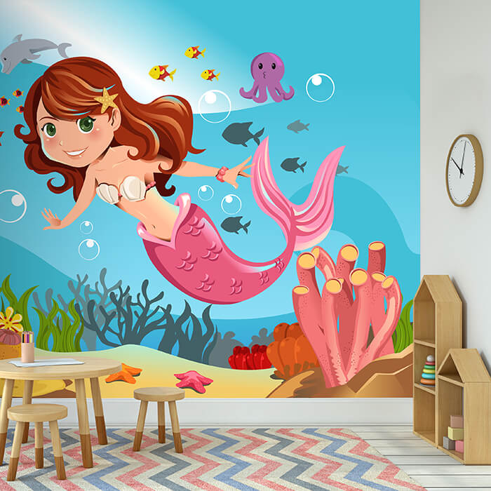 FOTOTAPETE Kinderzimmer Meerjungfrau Unterwasser