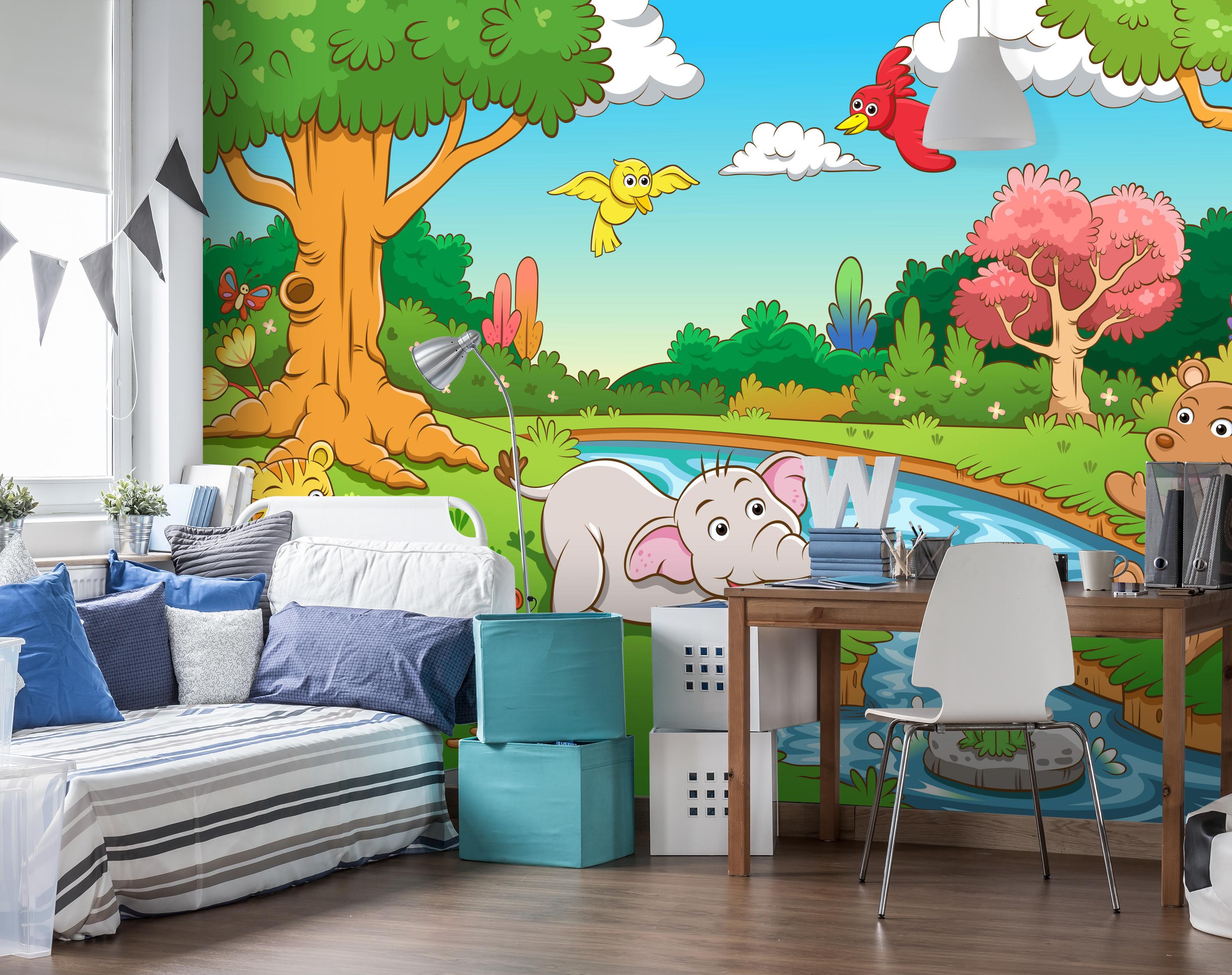 FOTOTAPETE Kinderzimmer Tiere im Wald