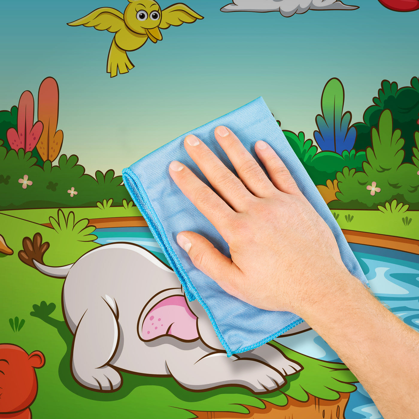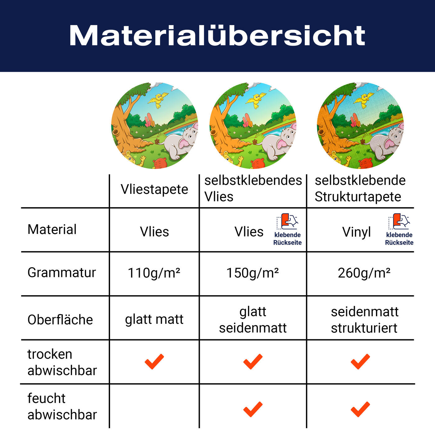 Die Fototapeten sind pflegeleicht und können mit einem feuchten Tuch gereinigt werden, ohne die Farbbrillanz zu beeinträchtigen.