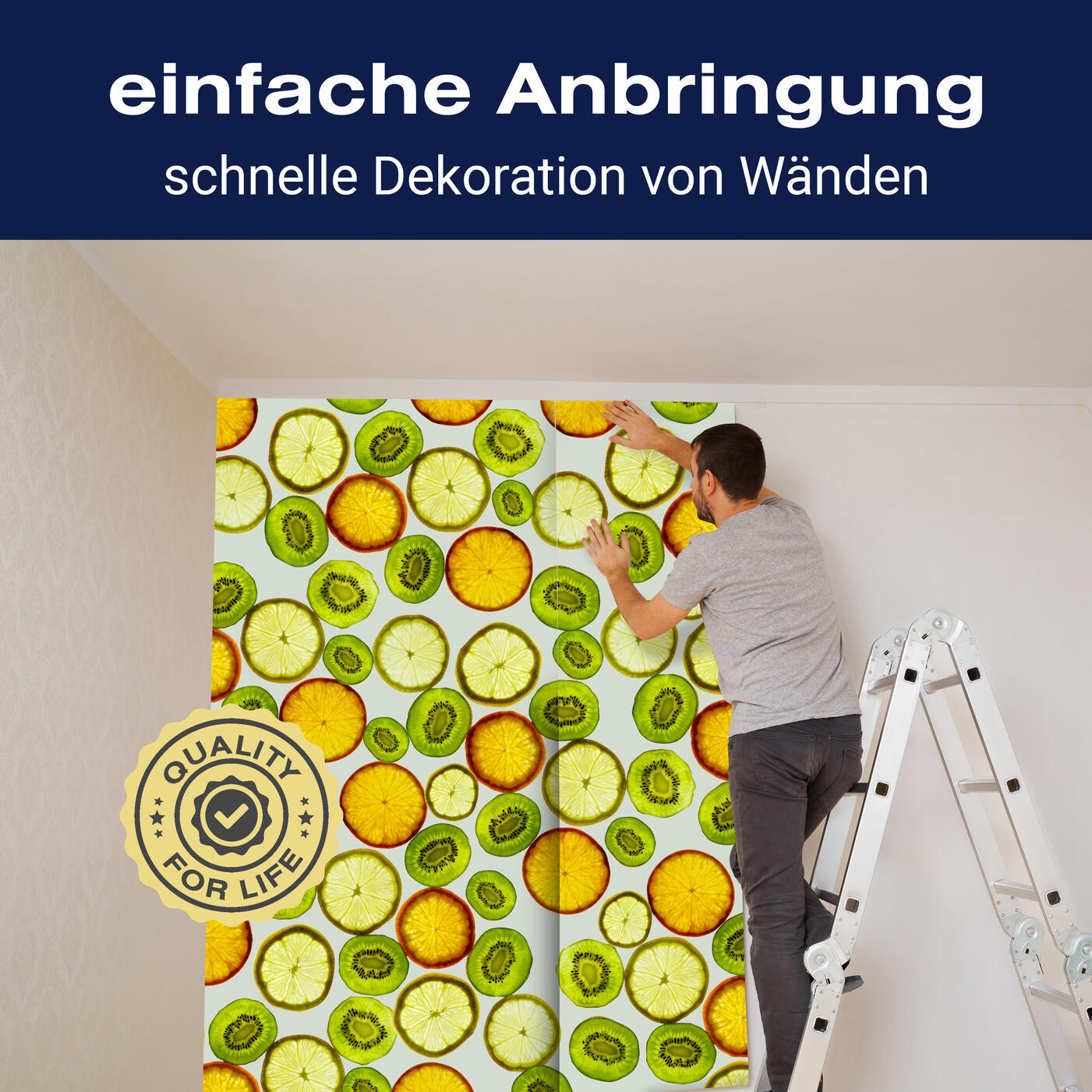 Träumst Du davon, Deine Wände in eine beeindruckende Kunstgalerie zu verwandeln? Mit unserer hochwertigen Fototapete Kiwi Zitrone Limette M0733 ist es jetzt möglich! Jede Wand wird zu einer Leinwand Deiner Kreativität.