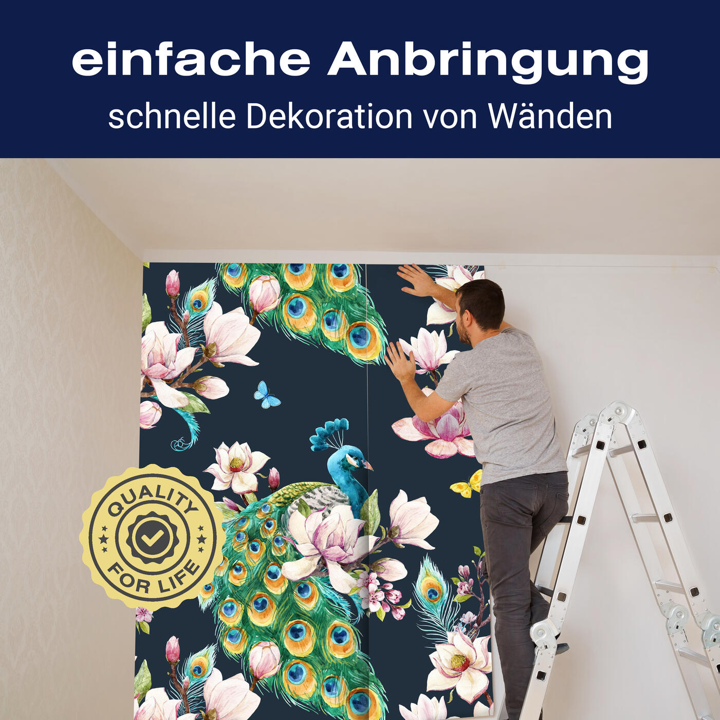FOTOTAPETE Kunst Aquarell Pfau Muster