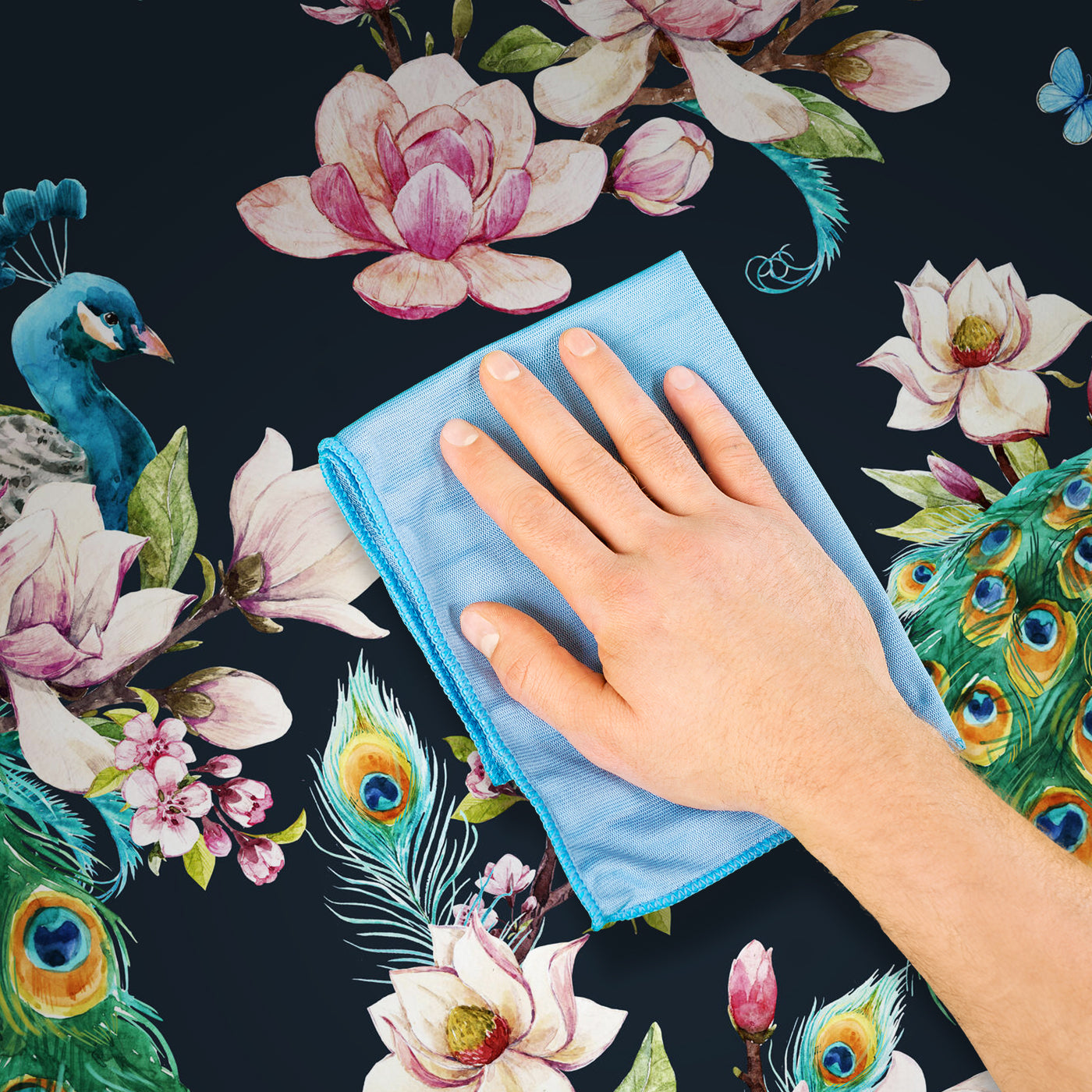 Die Fototapeten sind pflegeleicht und können mit einem feuchten Tuch gereinigt werden, ohne die Farbbrillanz zu beeinträchtigen.