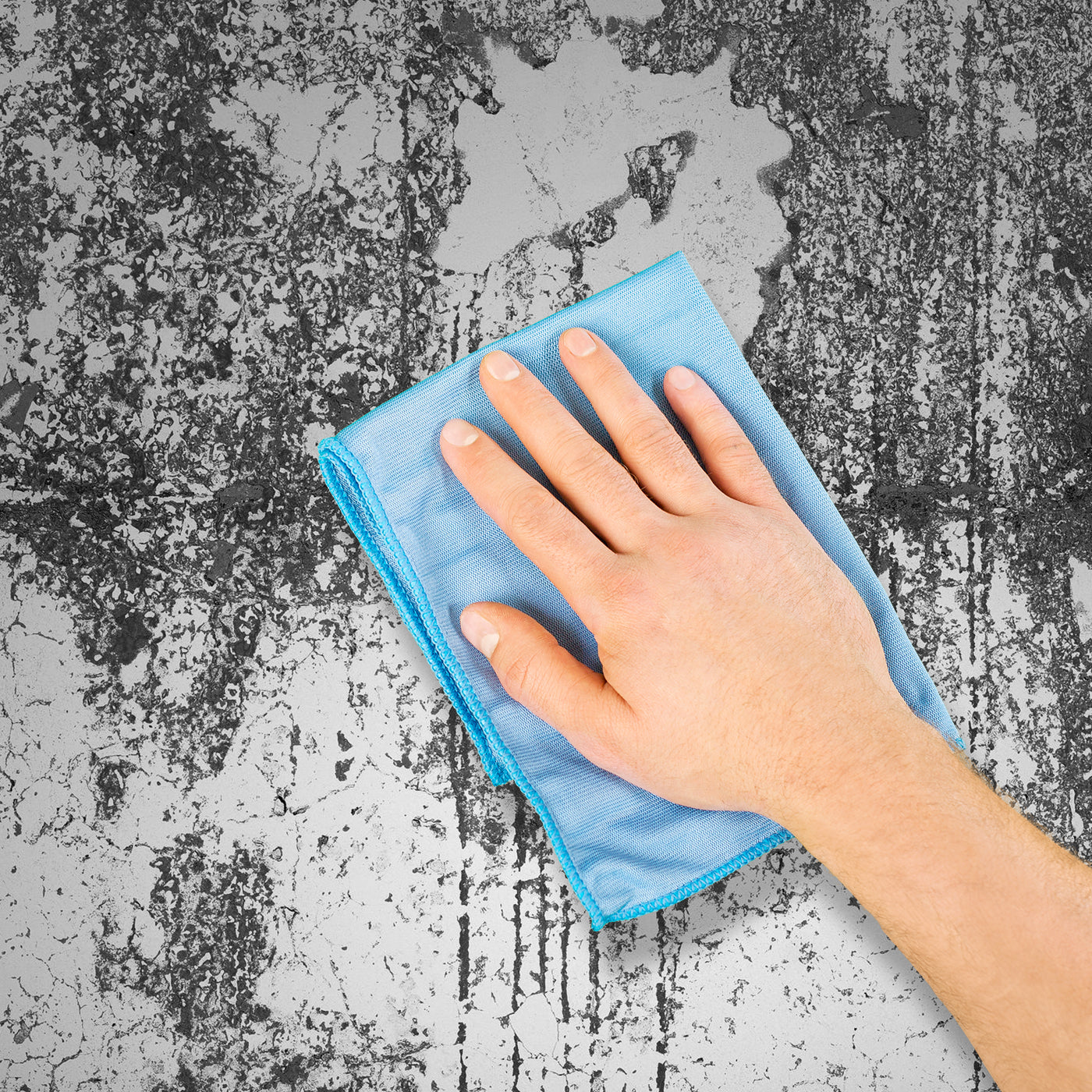 - Reinige eventuelle Verschmutzungen oder Kleberreste sofort mit einem feuchten Schwamm oder Tuch.