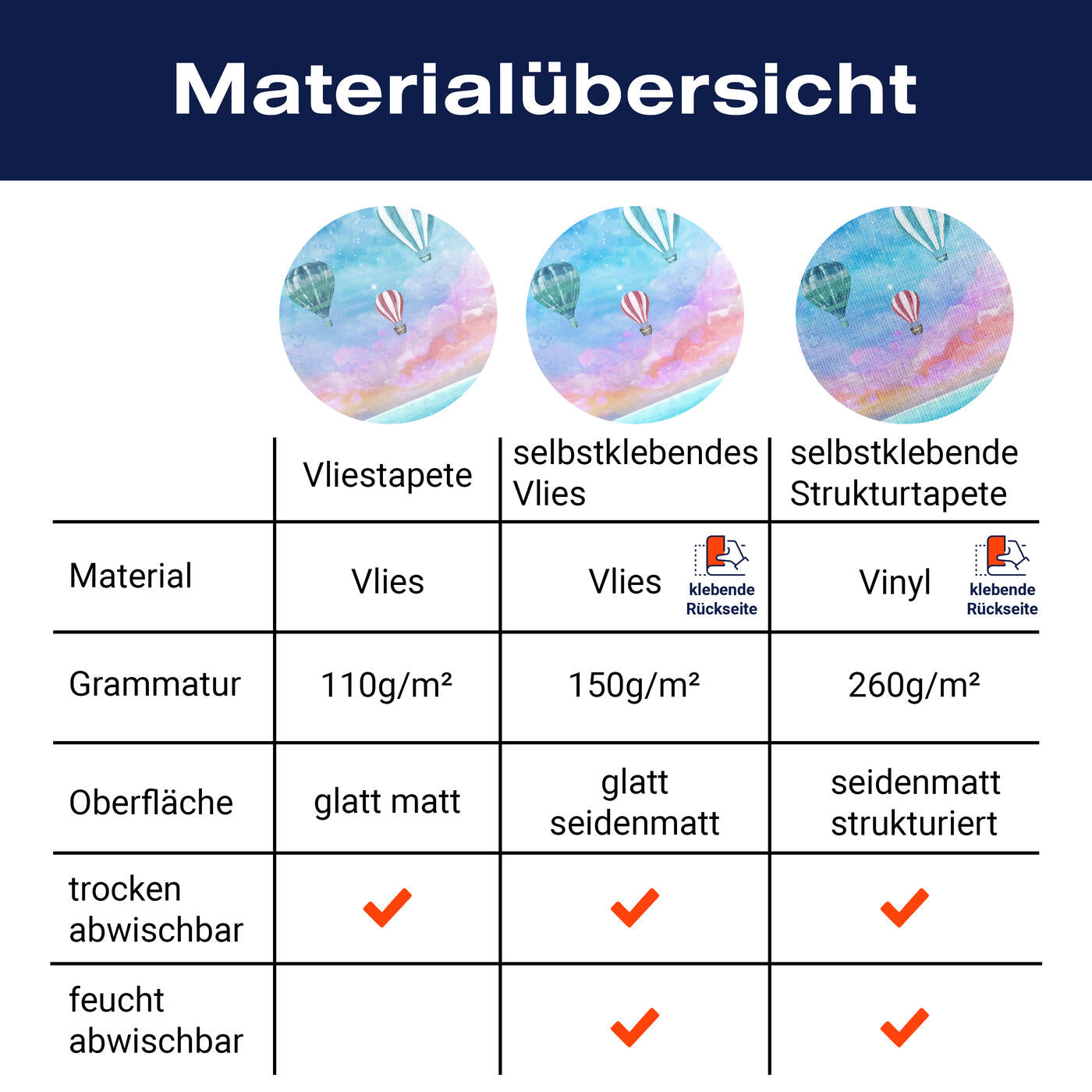 Die Fototapeten sind pflegeleicht und können mit einem feuchten Tuch gereinigt werden, ohne die Farbbrillanz zu beeinträchtigen.