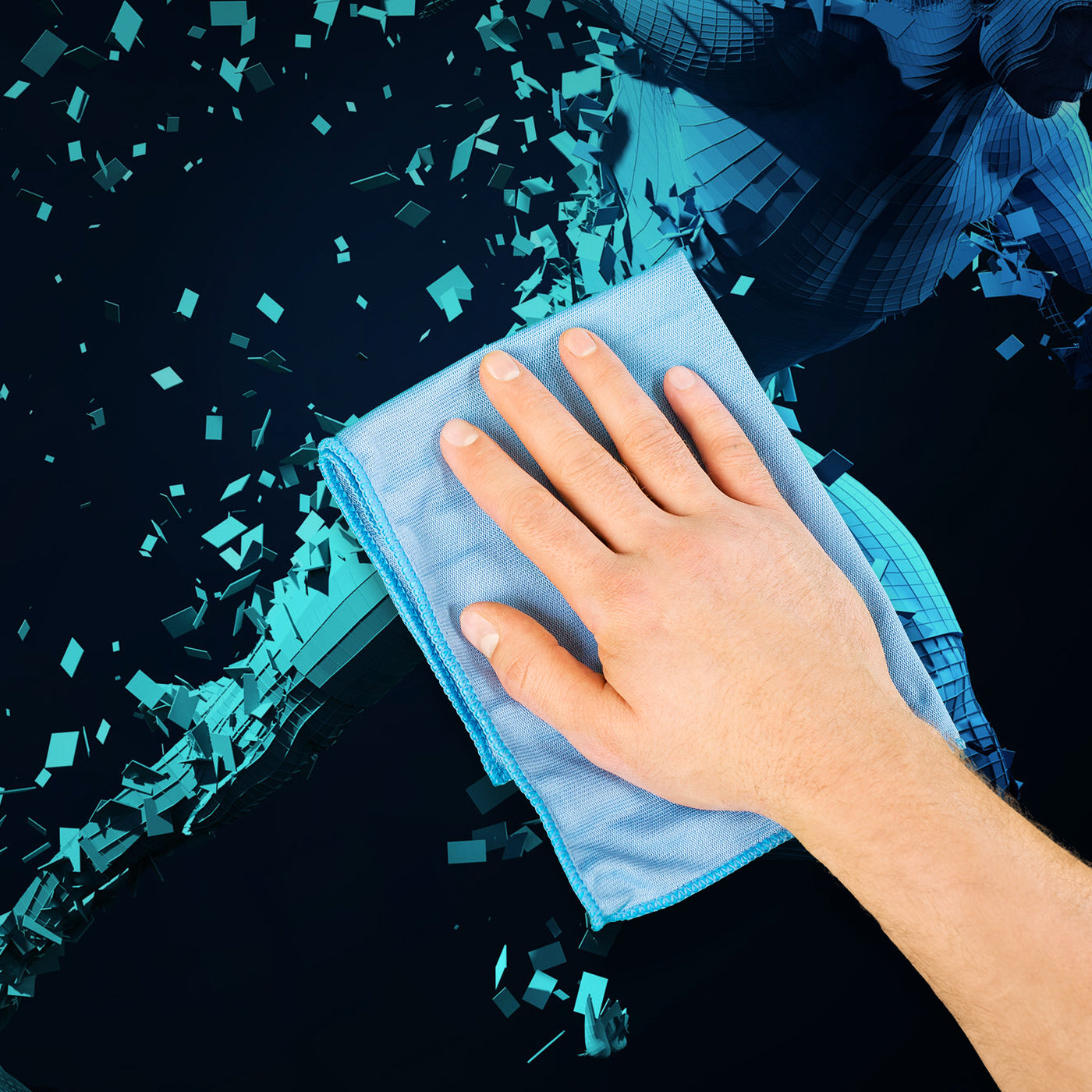 - Reinige eventuelle Verschmutzungen oder Kleberreste sofort mit einem feuchten Schwamm oder Tuch.