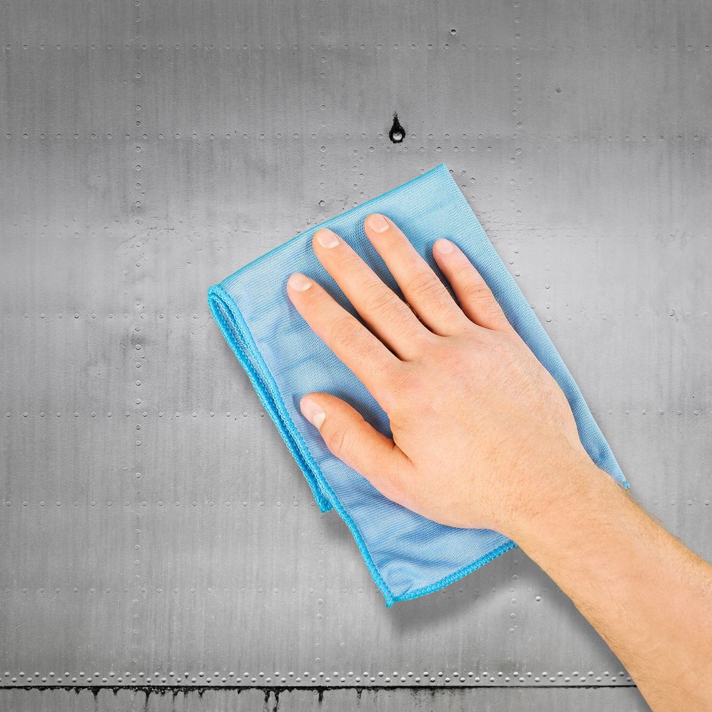 - Reinige eventuelle Verschmutzungen oder Kleberreste sofort mit einem feuchten Schwamm oder Tuch.