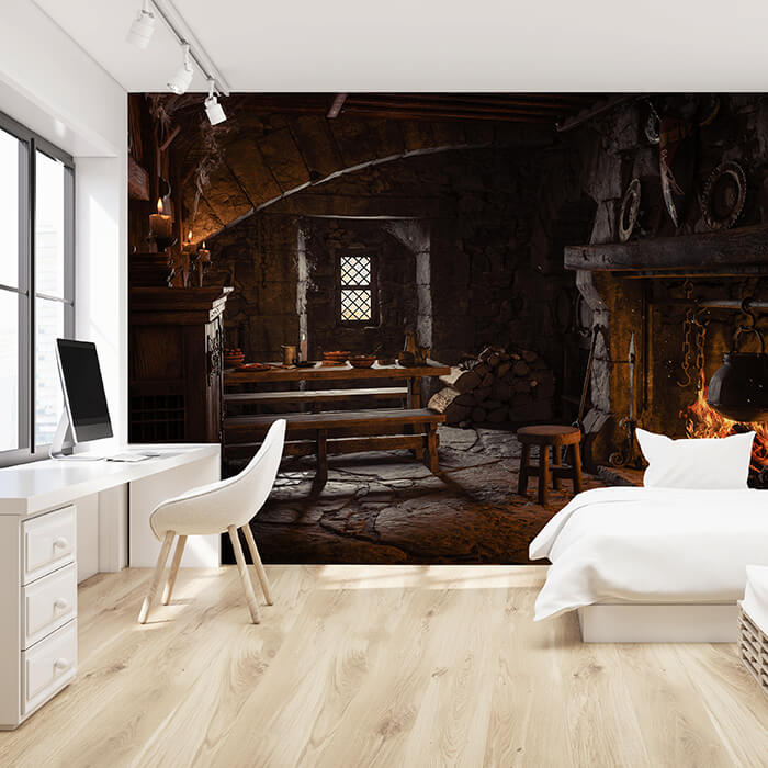 FOTOTAPETE Mittelalter Raum Kamin Fantasy