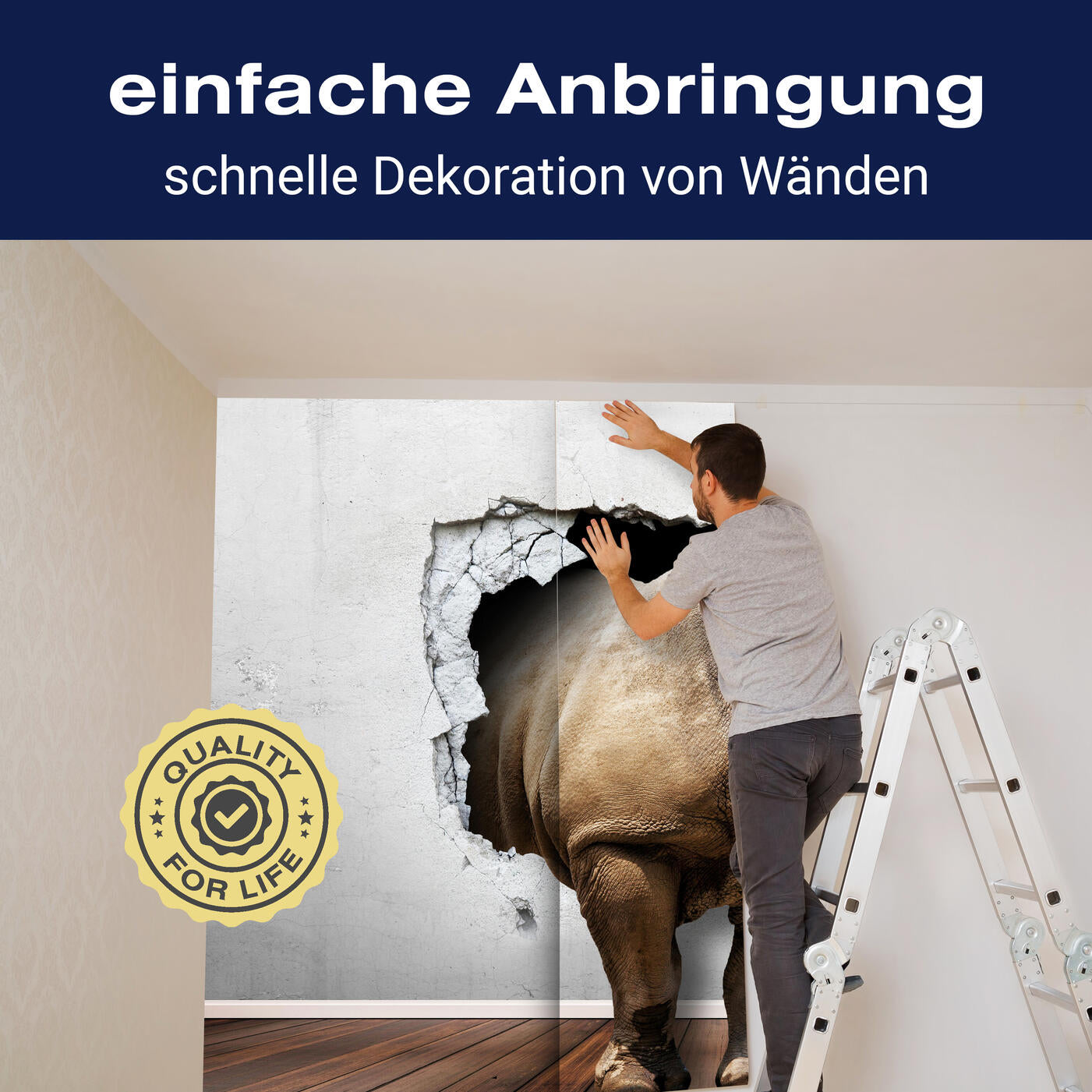 FOTOTAPETE Nashorn 3D Optik Wanddruchbruch