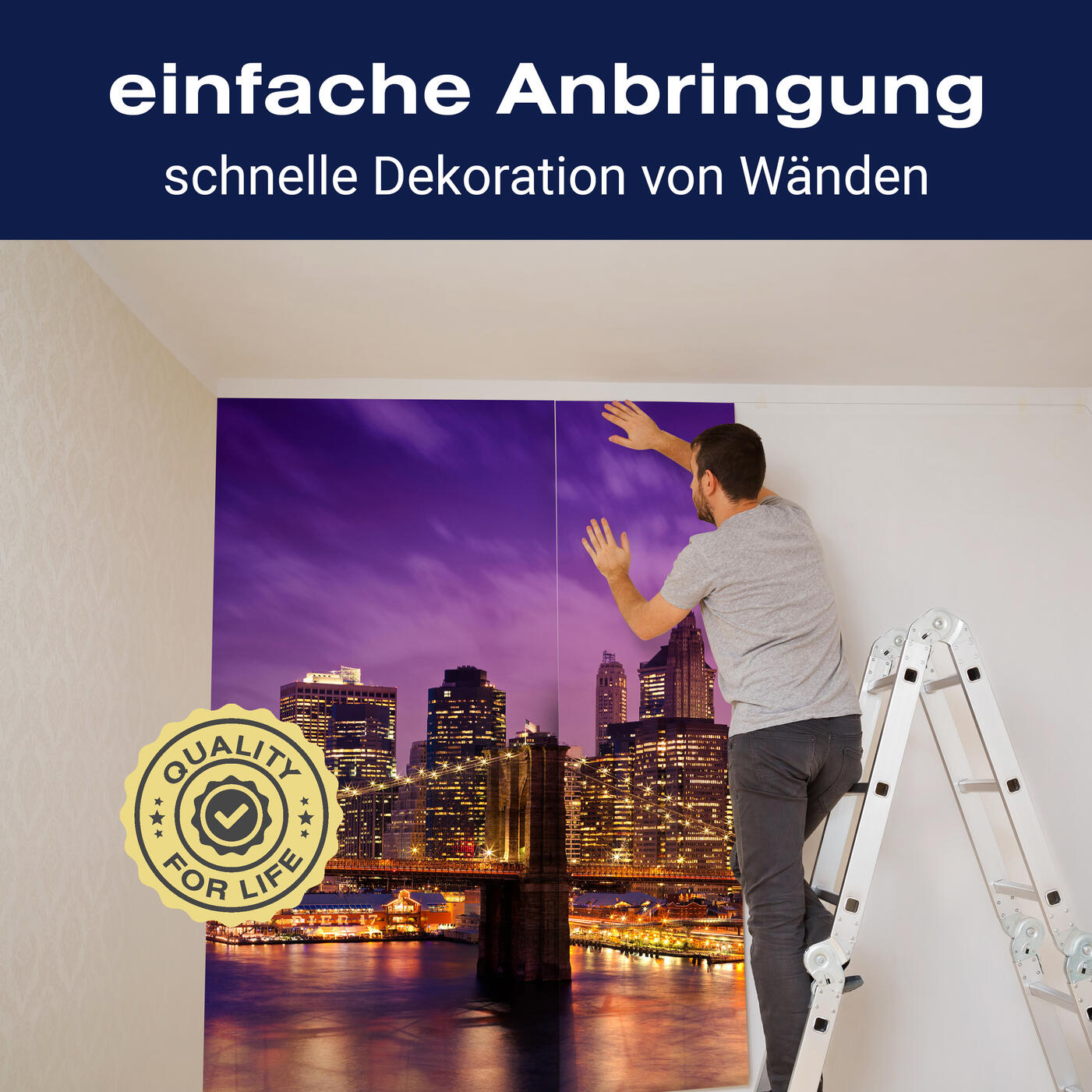 Unsere Fototapeten sind so konzipiert, dass sie ohne großen Aufwand angebracht werden können. Ob selbstklebend oder traditionell, die Anbringung ist einfach und schnell.