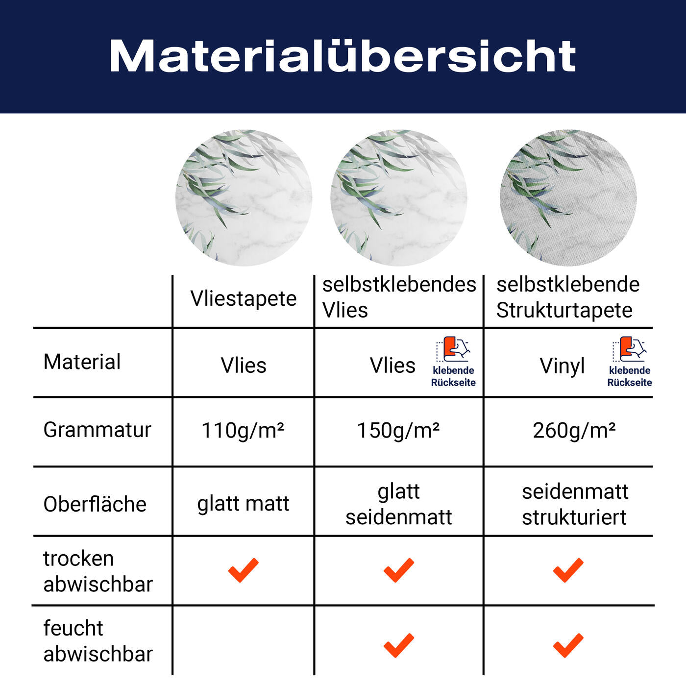 - Selbstklebendes Vlies 150g/m²: Einfach anzubringen, perfekt für Mietwohnungen.