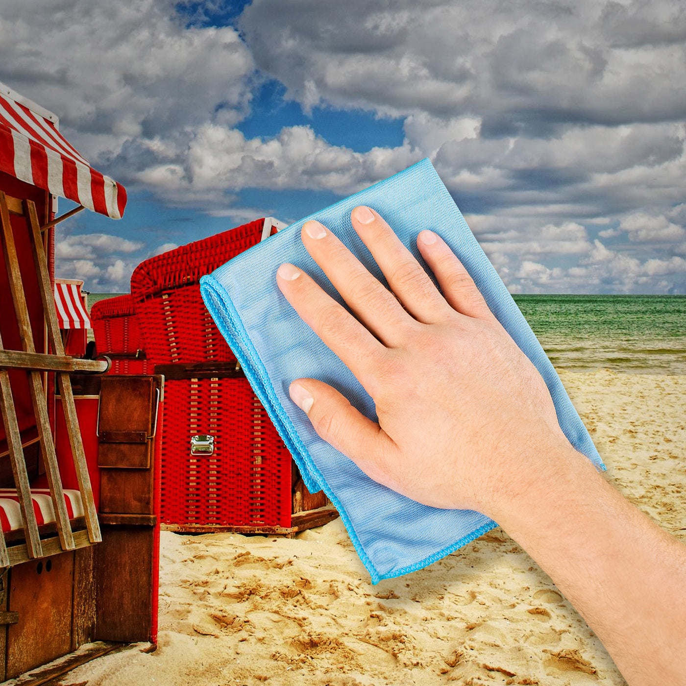 - Reinige eventuelle Verschmutzungen oder Kleberreste sofort mit einem feuchten Schwamm oder Tuch.