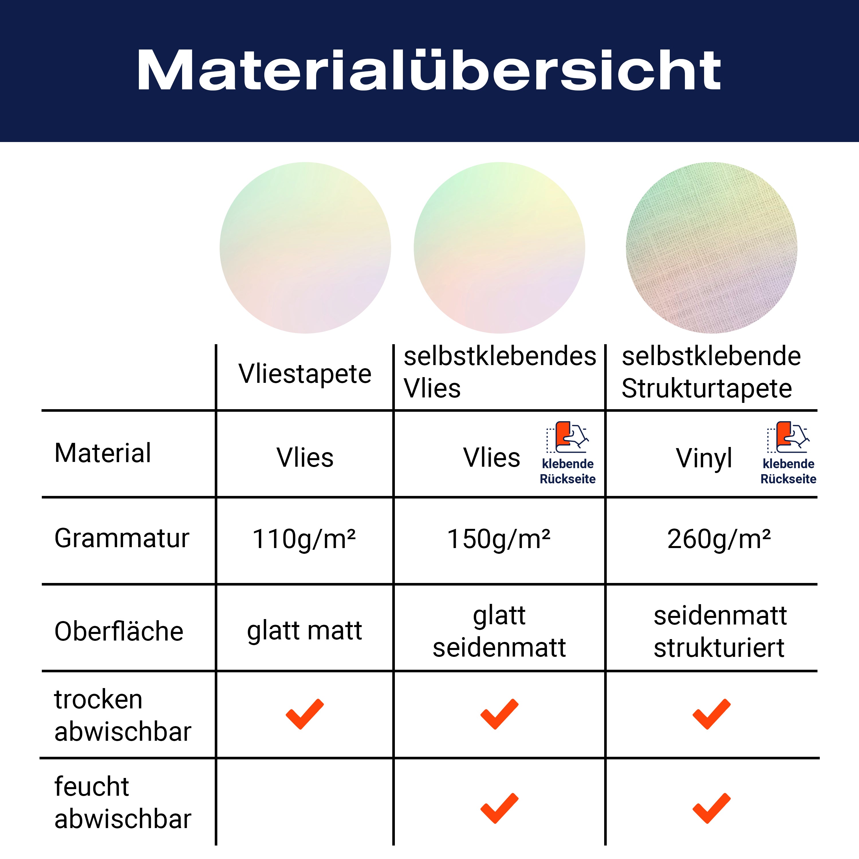 - Selbstklebendes Vlies 150g/m²: Einfach anzubringen, perfekt für Mietwohnungen.
