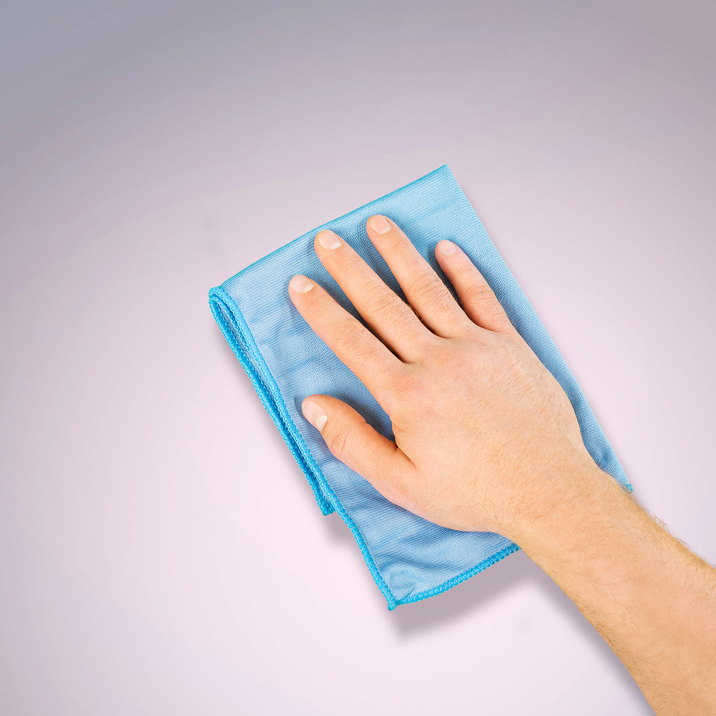 - Reinige eventuelle Verschmutzungen oder Kleberreste sofort mit einem feuchten Schwamm oder Tuch.