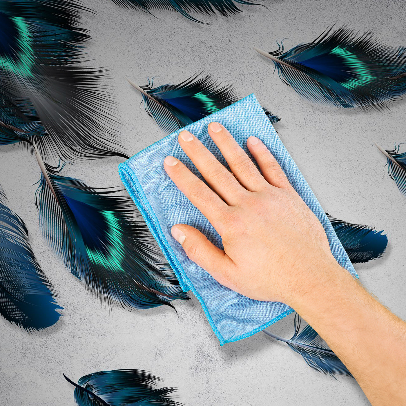 - Reinige eventuelle Verschmutzungen oder Kleberreste sofort mit einem feuchten Schwamm oder Tuch.