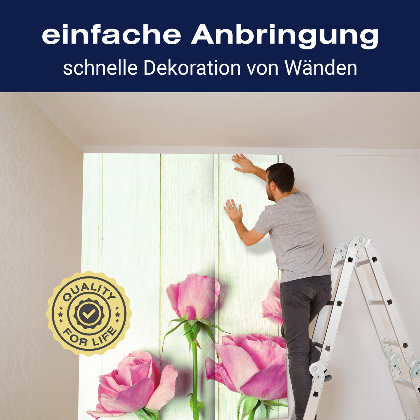 Die Fototapeten sind pflegeleicht und können mit einem feuchten Tuch gereinigt werden, ohne die Farbbrillanz zu beeinträchtigen.