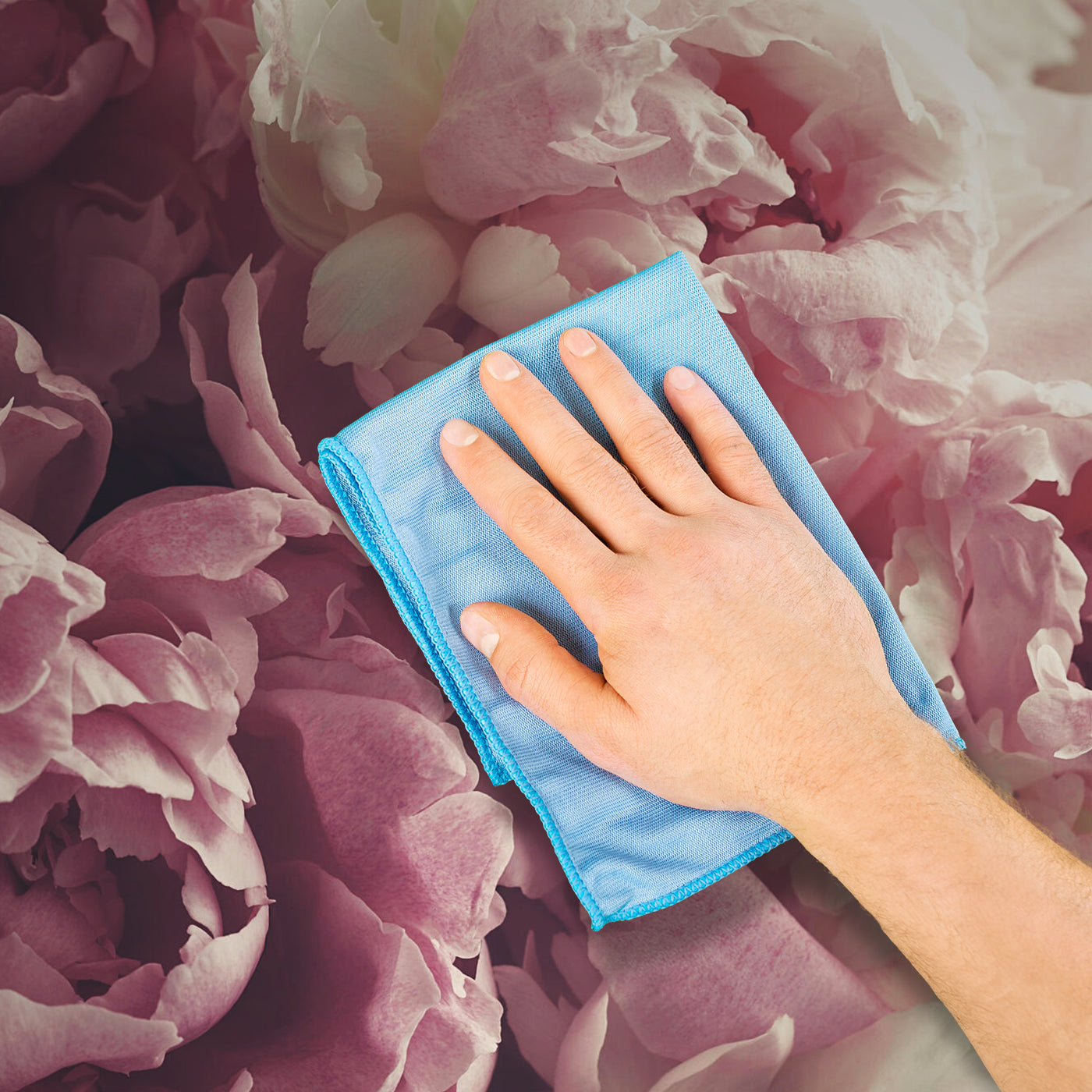 - Reinige eventuelle Verschmutzungen oder Kleberreste sofort mit einem feuchten Schwamm oder Tuch.