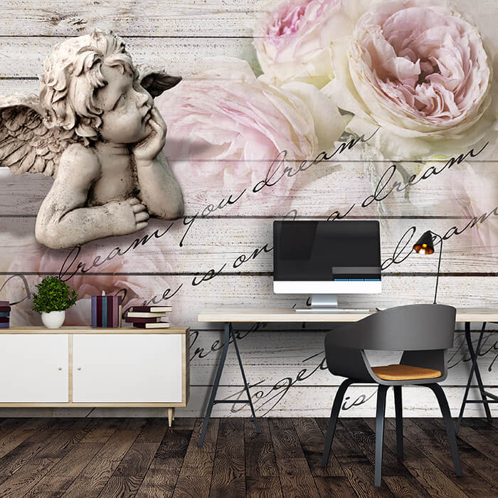 Fototapete Rosen Holz Engel M1271