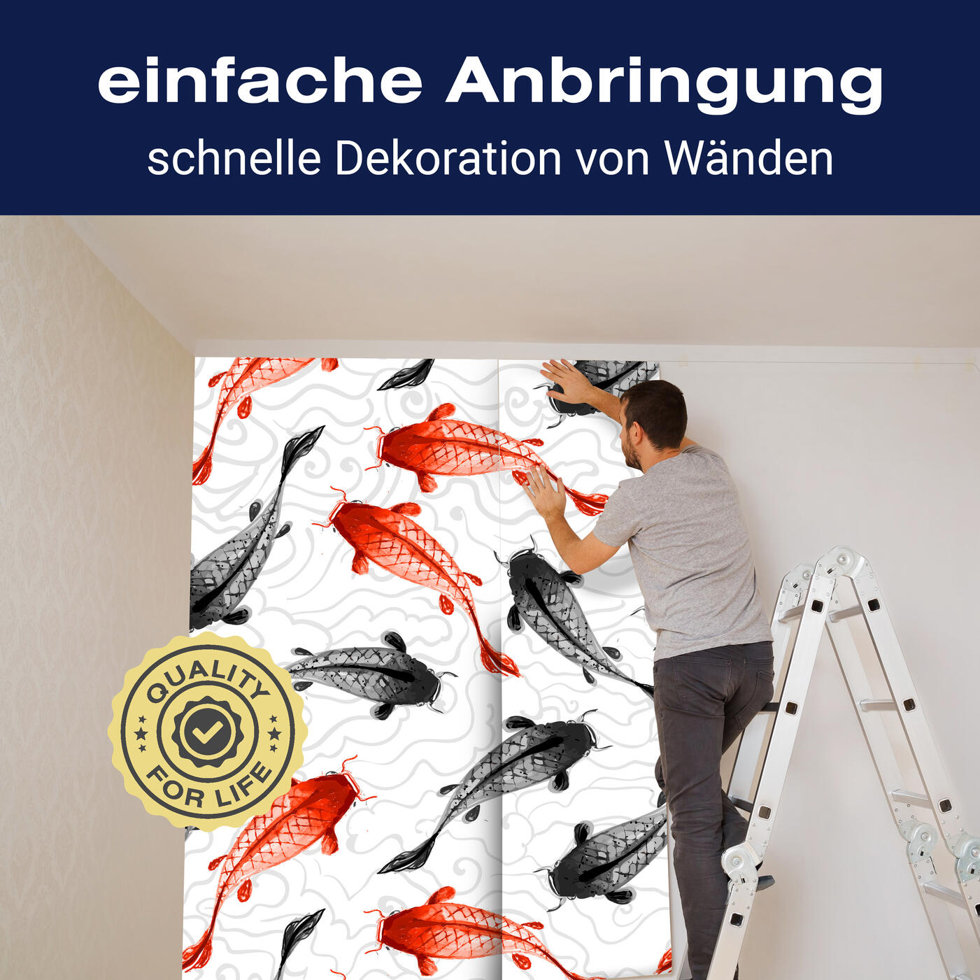 FOTOTAPETE rote und schwarze Koi-Karpfen