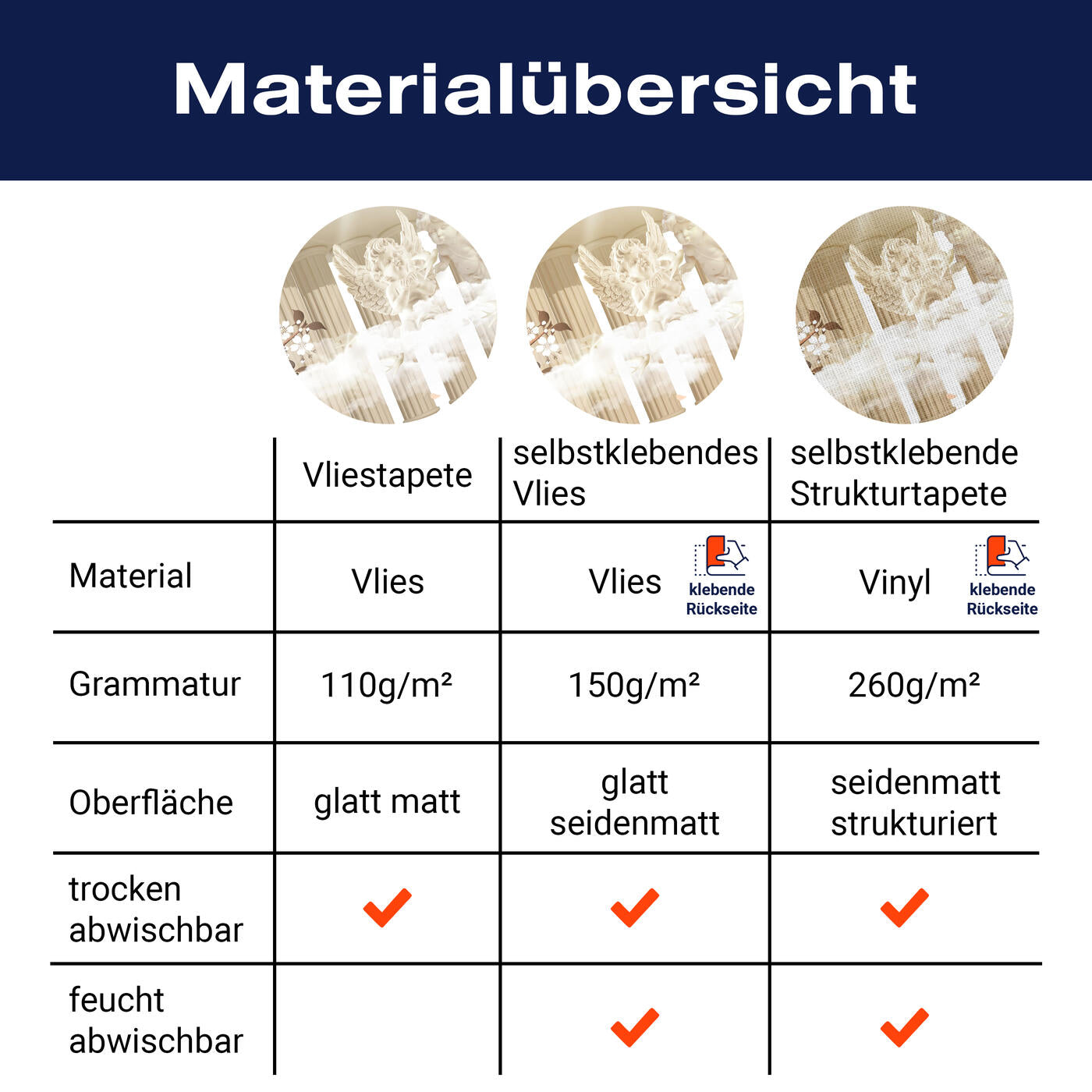 - Selbstklebendes Vlies 150g/m²: Einfach anzubringen, perfekt für Mietwohnungen.