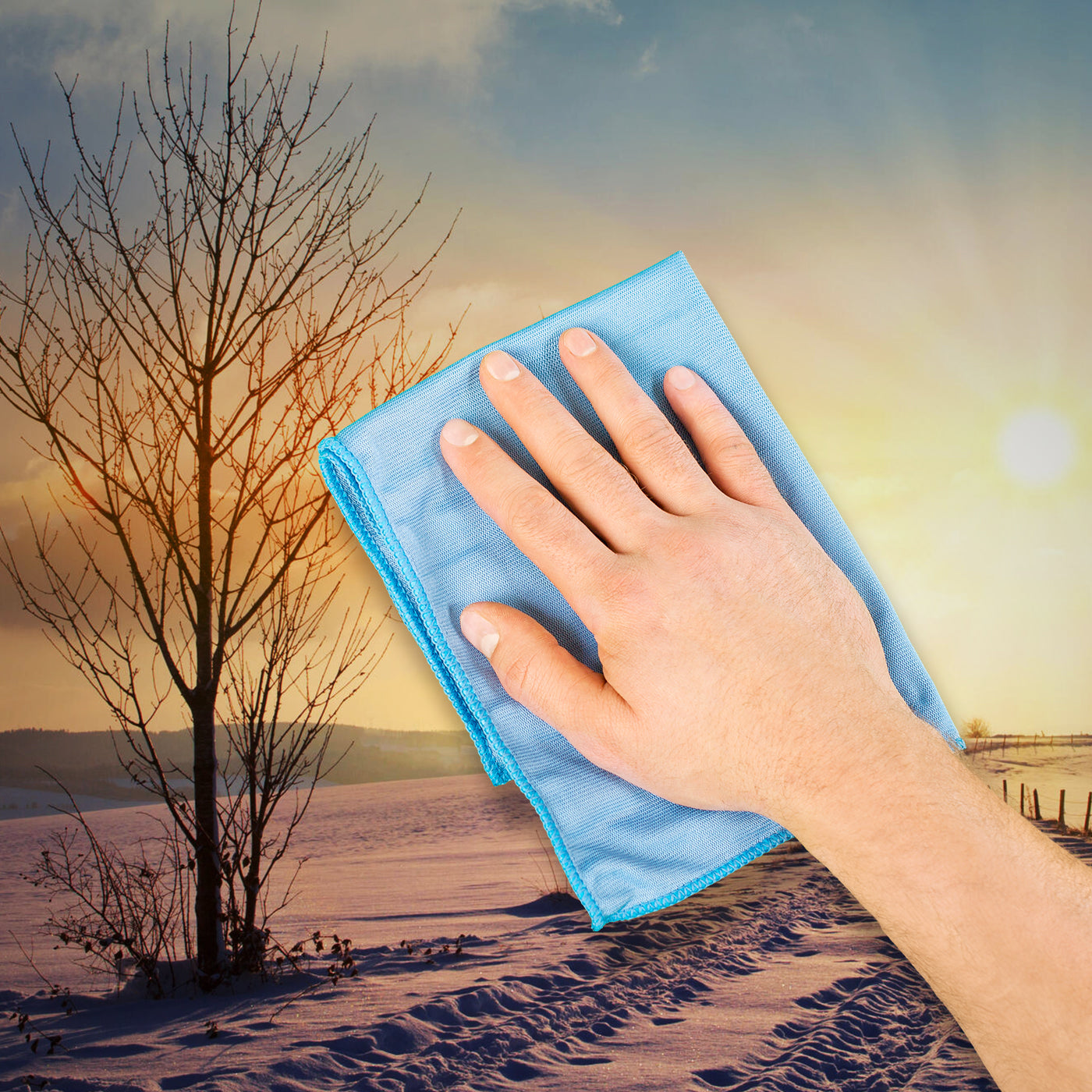 - Reinige eventuelle Kleberreste sofort mit einem feuchten Schwamm oder Tuch.