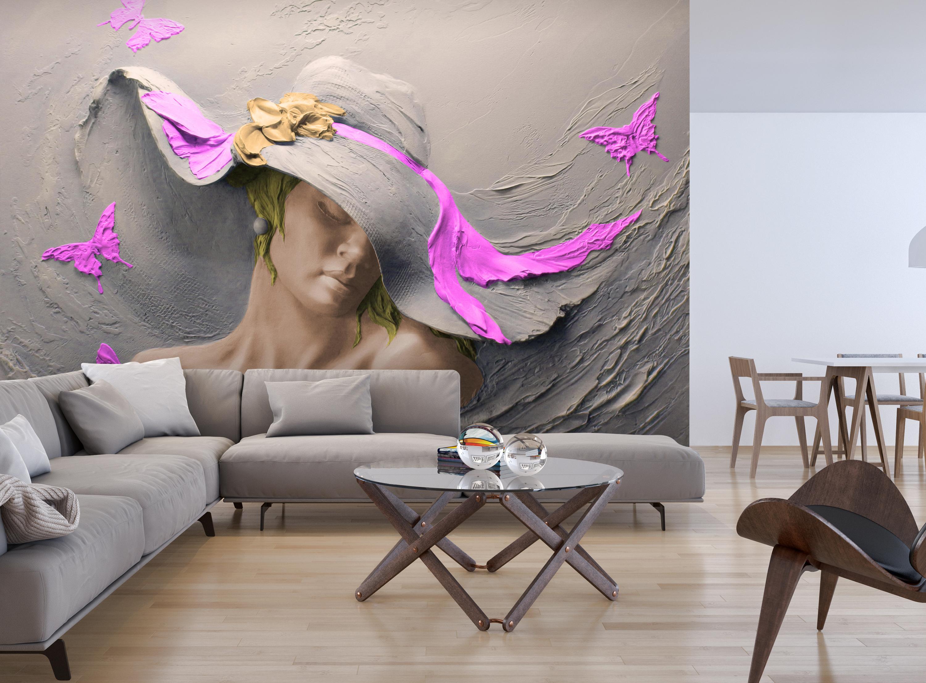 Träumst Du davon, Deine Wände in eine beeindruckende Kunstgalerie zu verwandeln? Mit unserer hochwertigen Fototapete Skulptur Frau rosa Schmetterlinge Wand M5272 ist es jetzt möglich! Jede Wand wird zu einer Leinwand Deiner Kreativität.