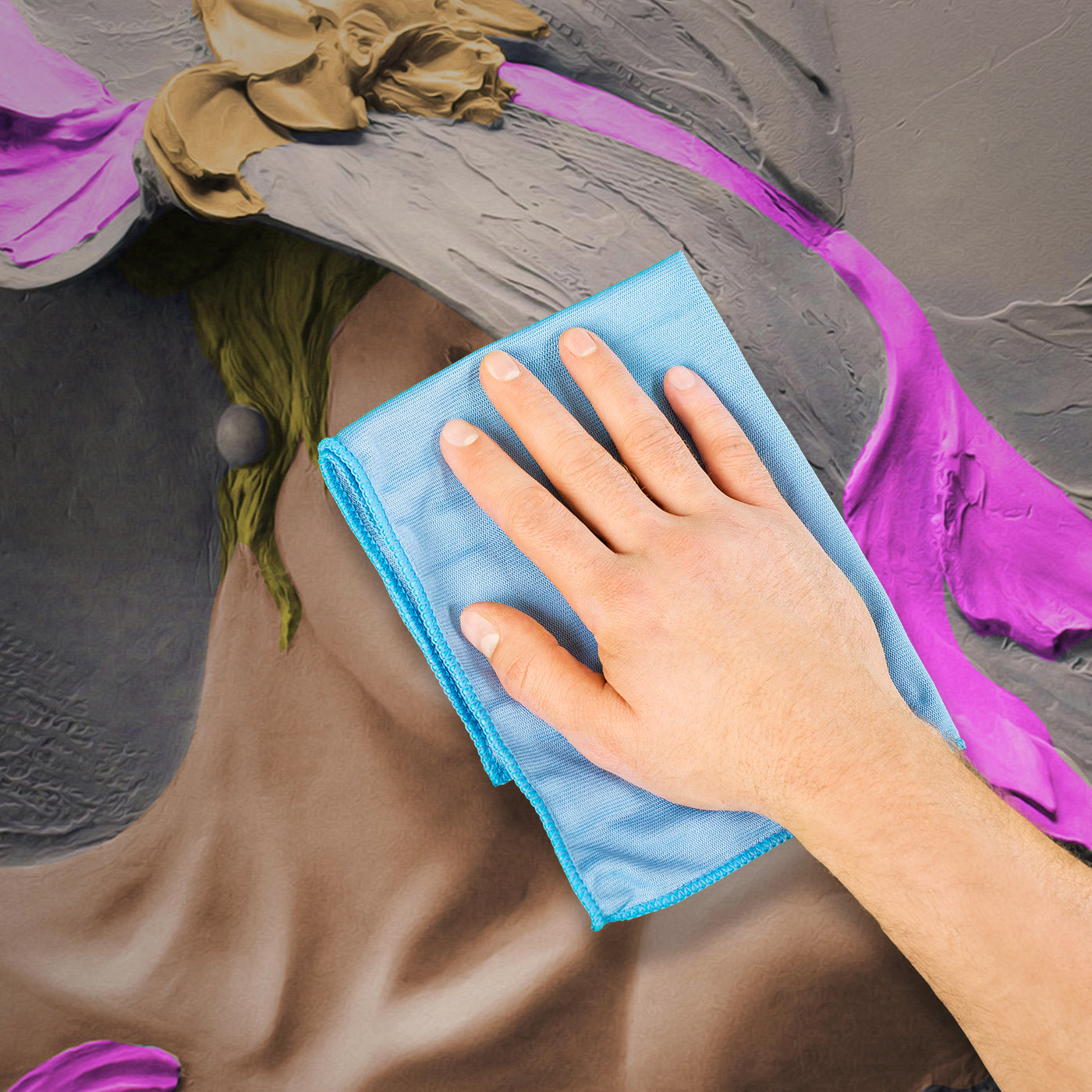 - Reinige eventuelle Verschmutzungen oder Kleberreste sofort mit einem feuchten Schwamm oder Tuch.