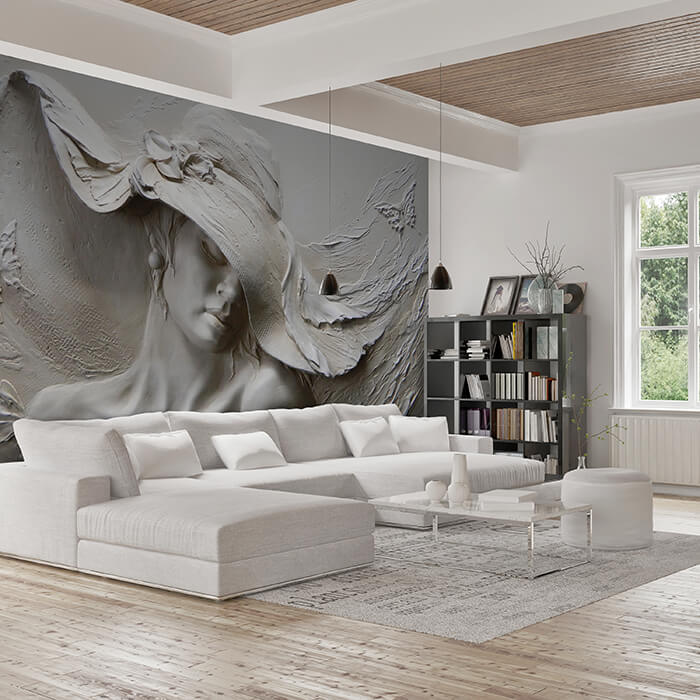 Träumst Du davon, Deine Wände in eine beeindruckende Kunstgalerie zu verwandeln? Mit unserer hochwertigen Fototapete Skulptur Frau Schmetterlinge Gips Wand M4631 ist es jetzt möglich! Jede Wand wird zu einer Leinwand Deiner Kreativität.