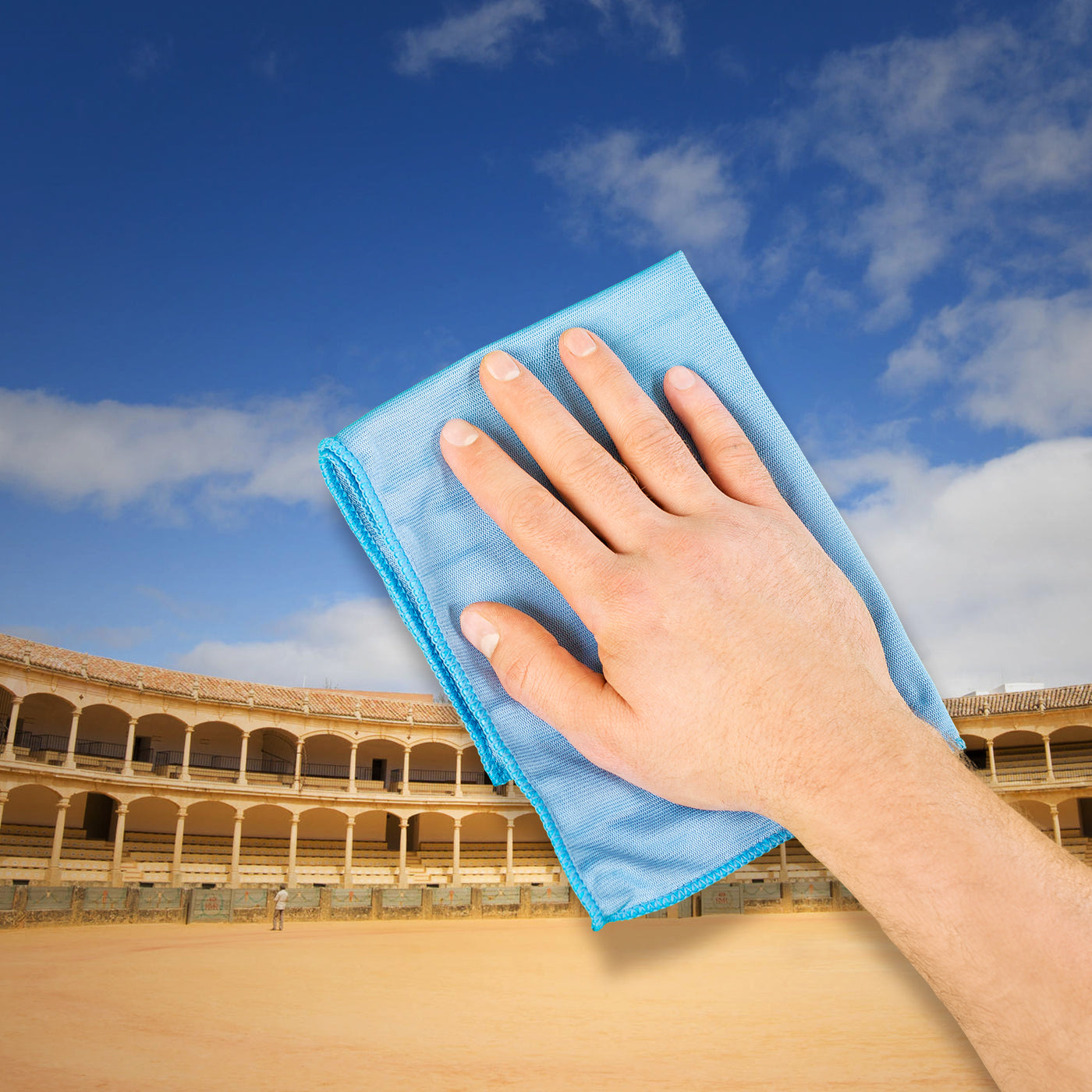 - Reinige eventuelle Verschmutzungen oder Kleberreste sofort mit einem feuchten Schwamm oder Tuch.