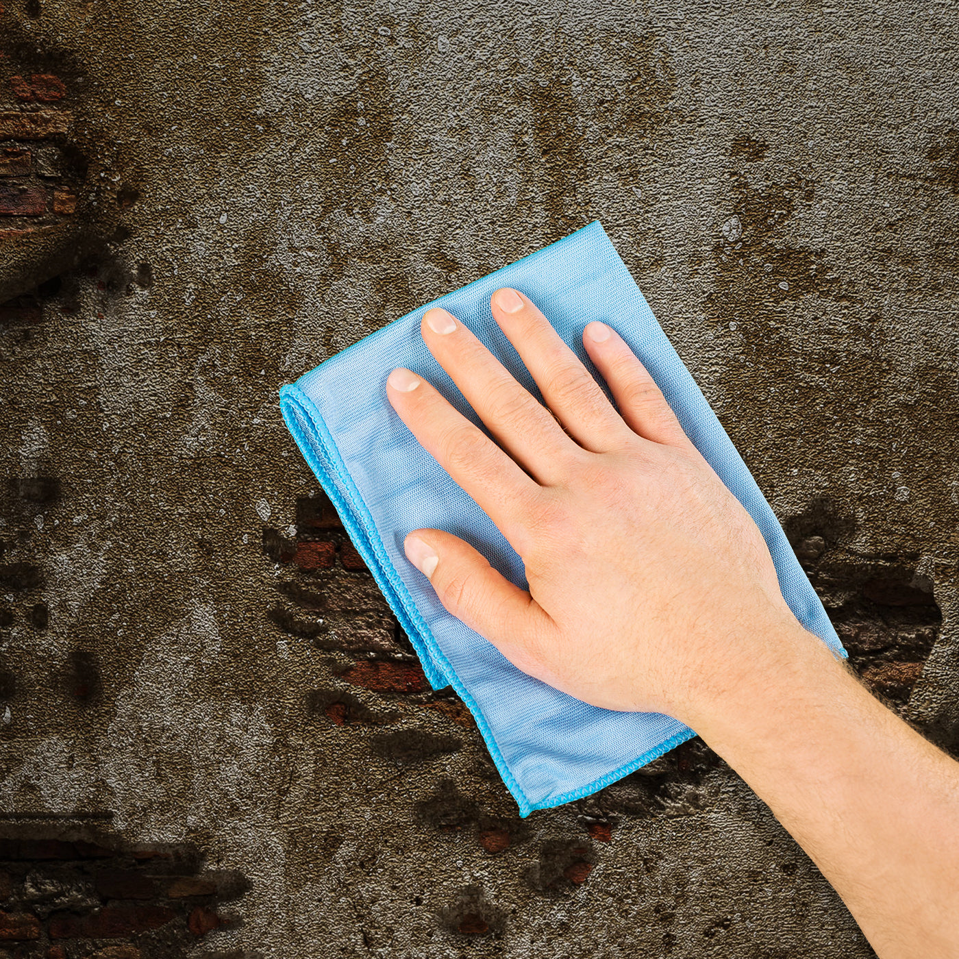 - Reinige eventuelle Verschmutzungen oder Kleberreste sofort mit einem feuchten Schwamm oder Tuch.